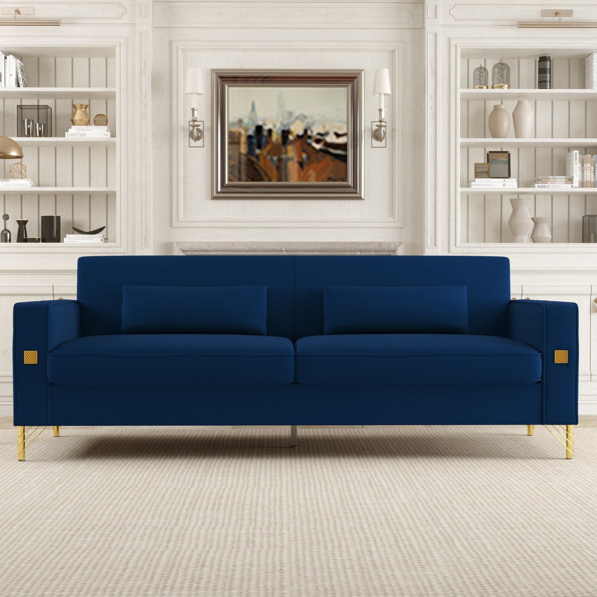 Décoration élégante en forme de tirette : La décoration en forme de tirette sur le dossier et l'accoudoir apporte une touche de délicatesse. Les accoudoirs, qui ressortent, rehaussent l'atmosphère, tandis que les deux décorations en acier inoxydable sur ces derniers apportent une touche contemporaine au canapé.