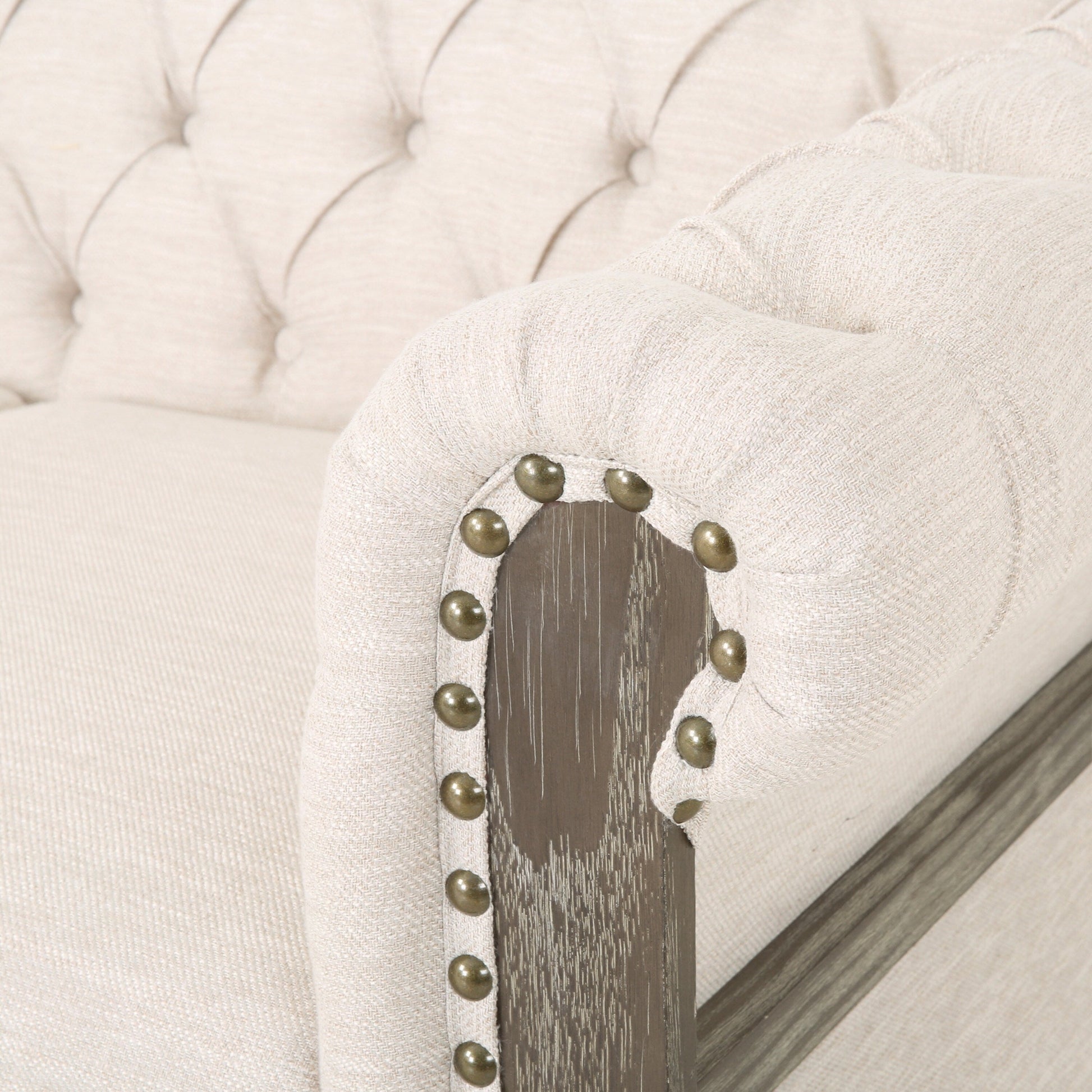 - Détails sophistiqués : rehaussez votre espace de vie avec des détails sophistiqués tels qu'un dossier touffeté, des rivets métalliques élégants et des accents exquis en bois massif, ajoutant une touche d'élégance et de raffinement à votre décor.