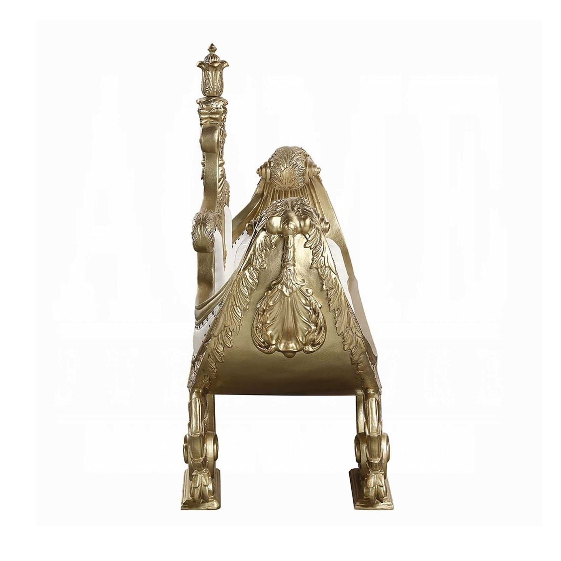 Canapé-banquette Rexx 71 pouces, sculptures dorées, similicuir blanc