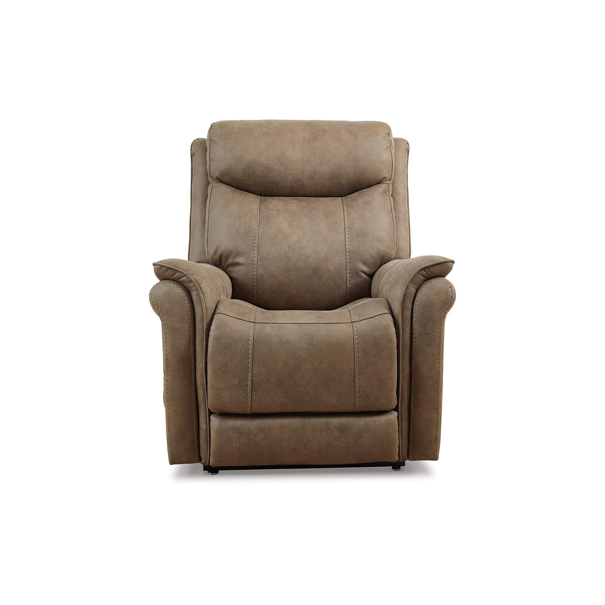 Fauteuil inclinable électrique Rezze, mousse, similicuir marron bois flotté