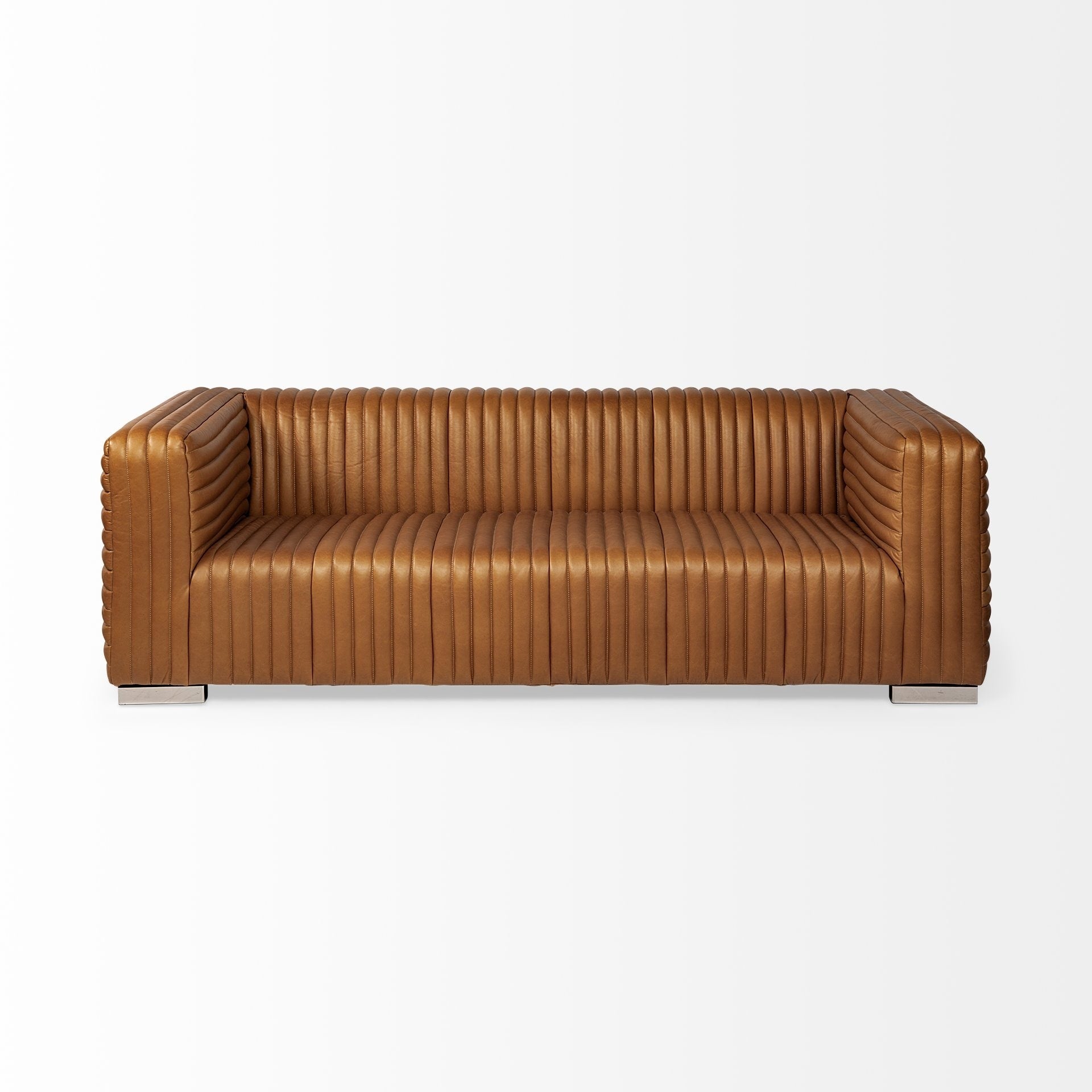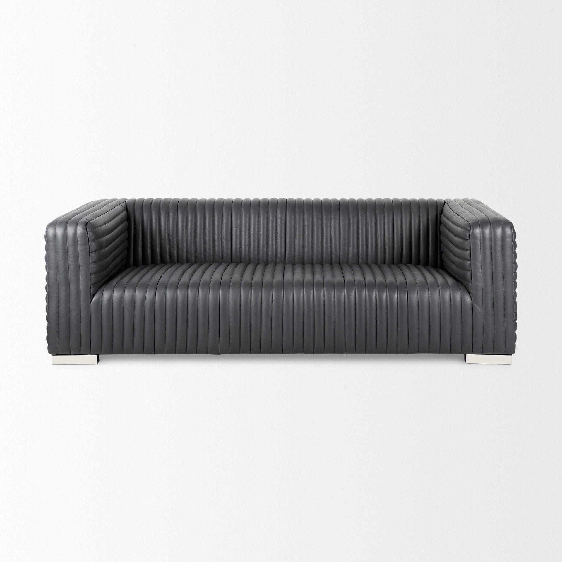 Confectionné en cuir, le Ricciardo est un canapé capitonné spectaculaire pouvant accueillir confortablement trois personnes. Doté d'une structure chromée à quatre pieds exceptionnellement robuste et durable, le Ricciardo est doté d'une assise moelleuse recouverte de cuir, non seulement confortable, mais qui s'harmonise parfaitement avec les éléments chromés de ce canapé luxueux. Le Riccardo s'intègre parfaitement aux espaces au style Mercana Modern.