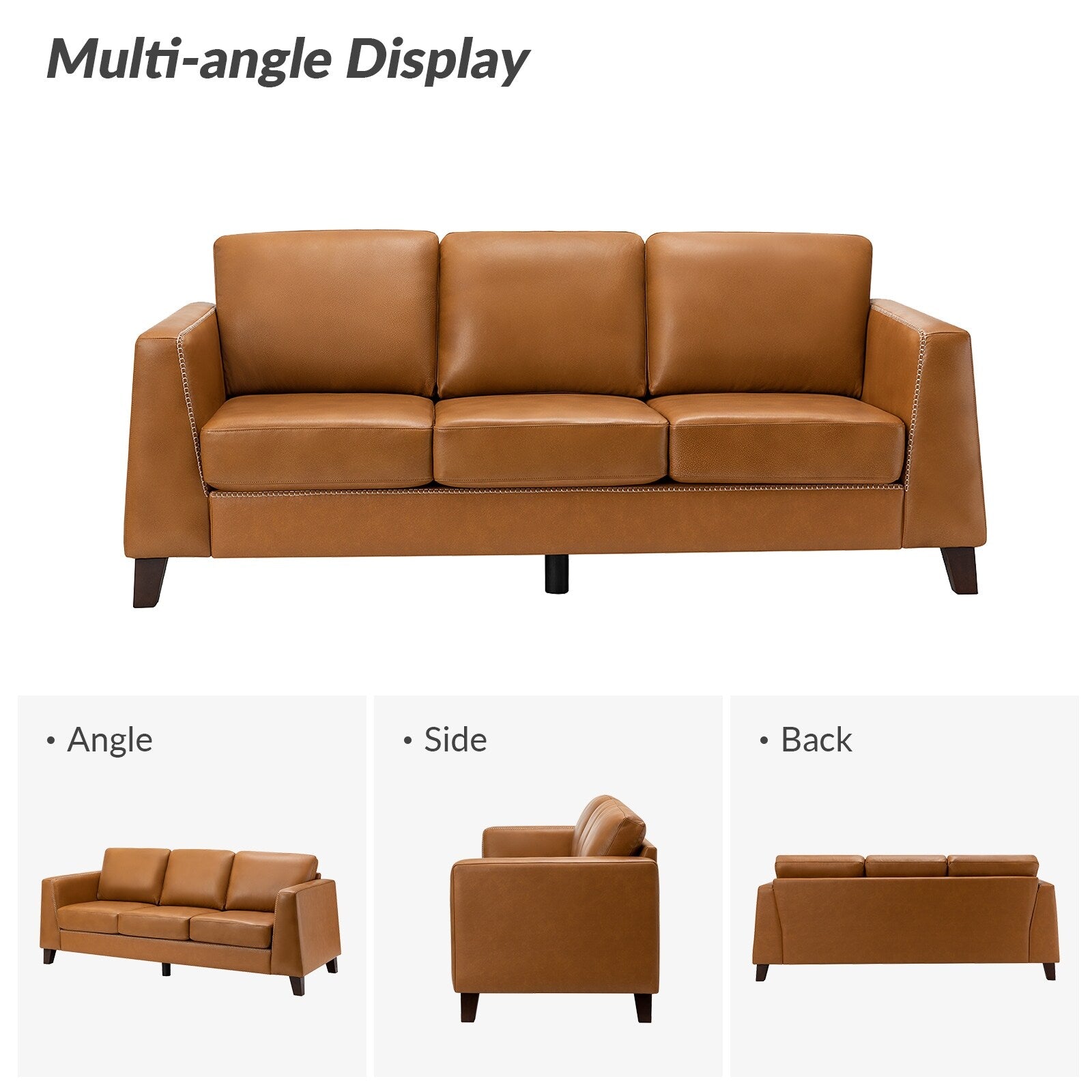 - MATÉRIAUX DE QUALITÉ : Le canapé est doté de cuir pleine fleur sur la plupart de ses surfaces de contact, tandis que du cuir vegan est utilisé pour les zones sans contact. Respirant, inodore, imperméable, antisalissure et résistant à la moisissure, le tissu est facile à nettoyer. De plus, il est adapté aux animaux et très résistant aux griffures, tout en s'adoucissant progressivement à l'usage.