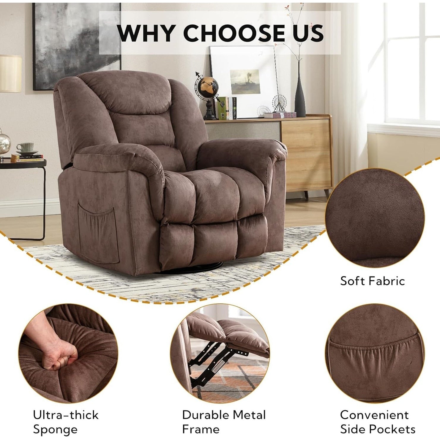 Fauteuil inclinable à bascule surdimensionné, pivotant à 360°, manuel, pour salon