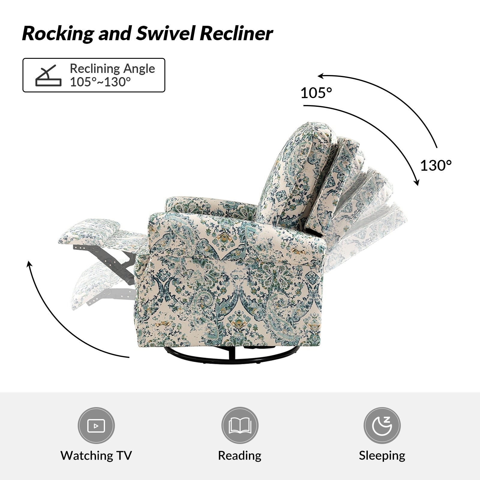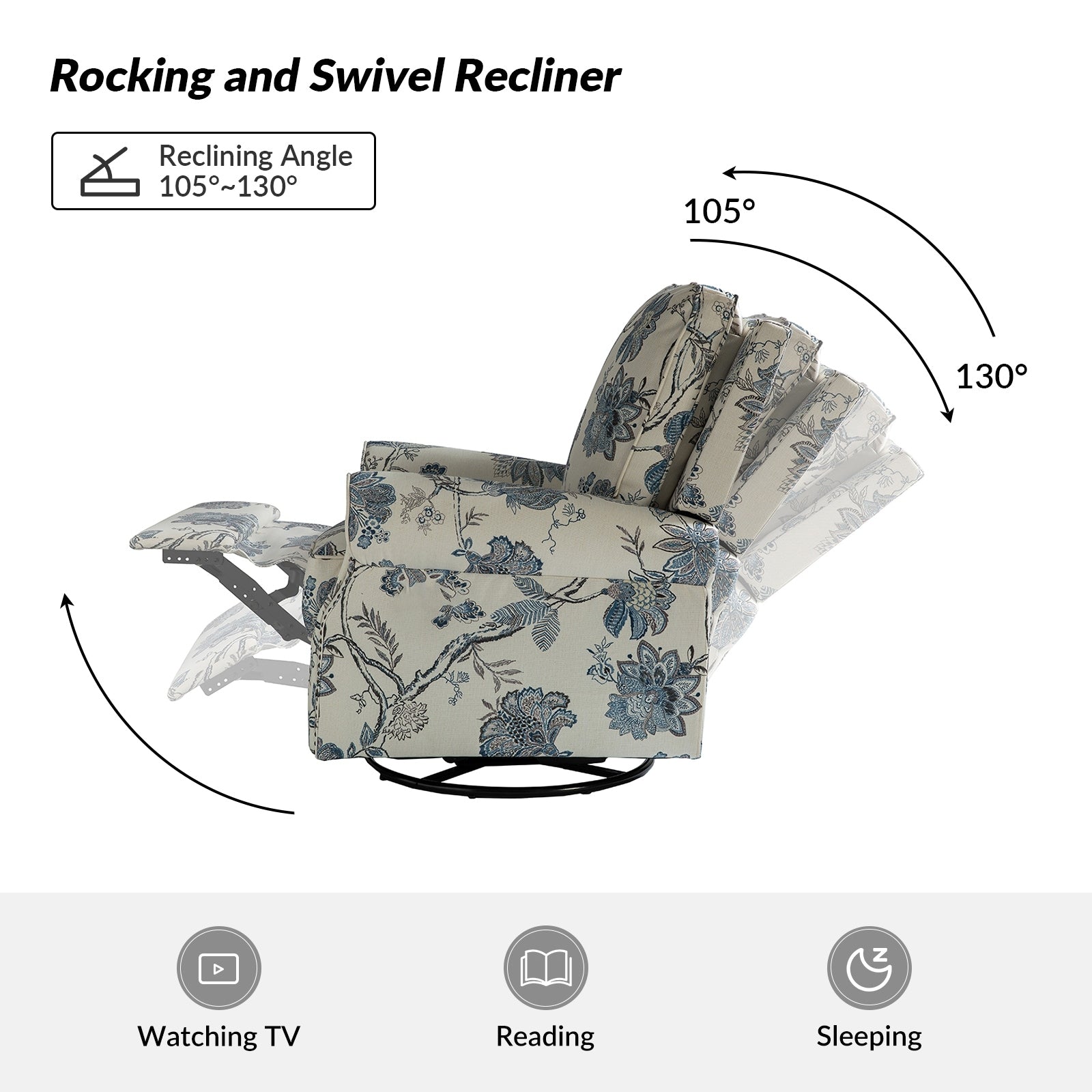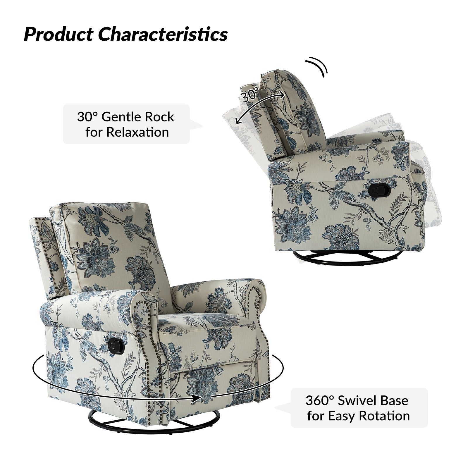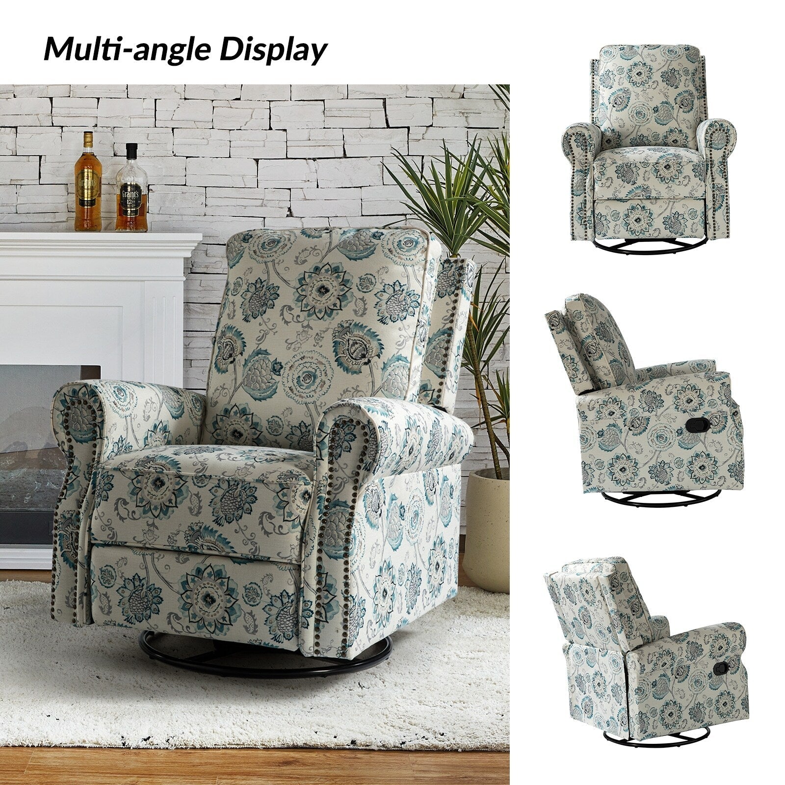 Fauteuil inclinable pivotant à bascule et à imprimé floral Roderich Farmhouse avec accoudoirs roulés, lot de 2 par HULALA HOME