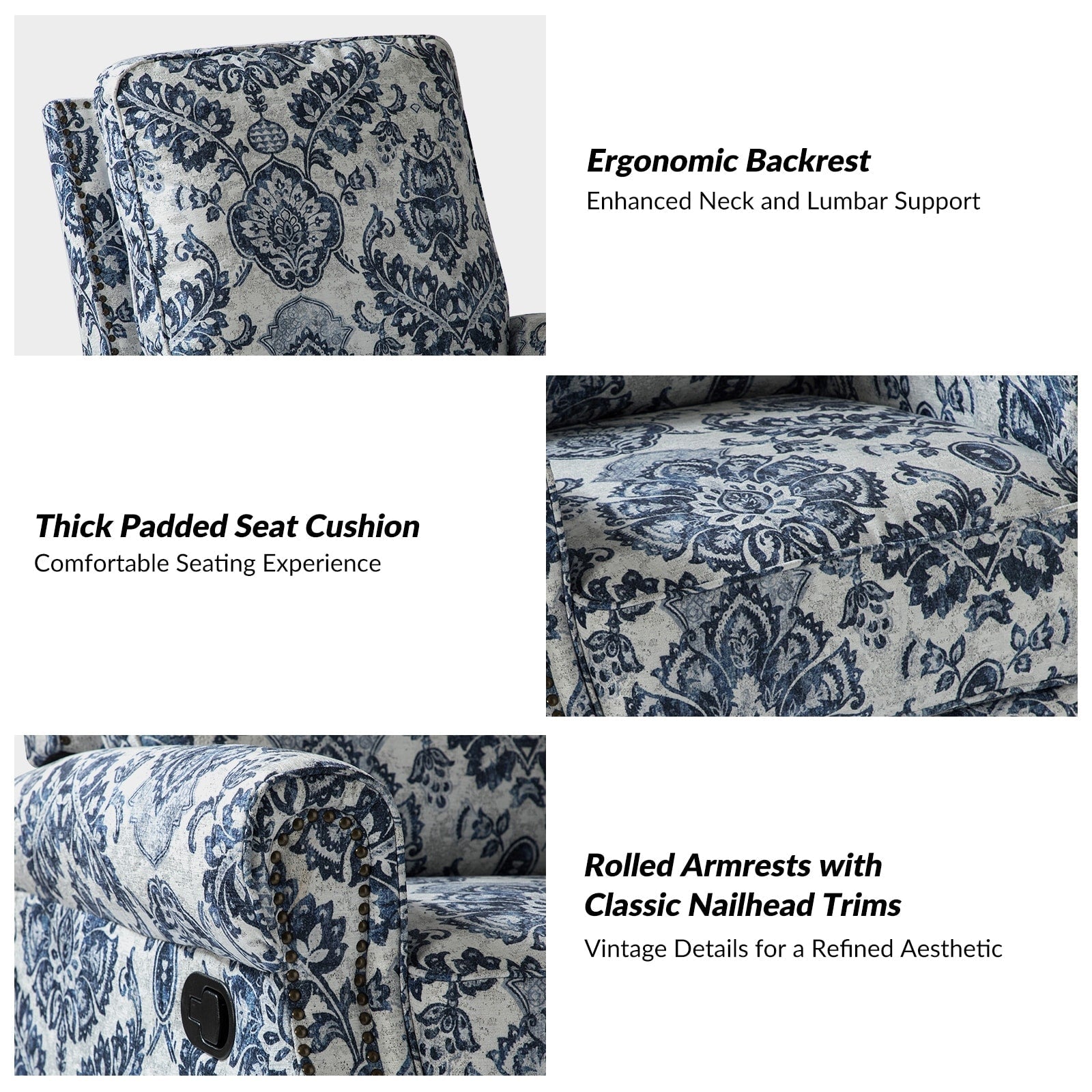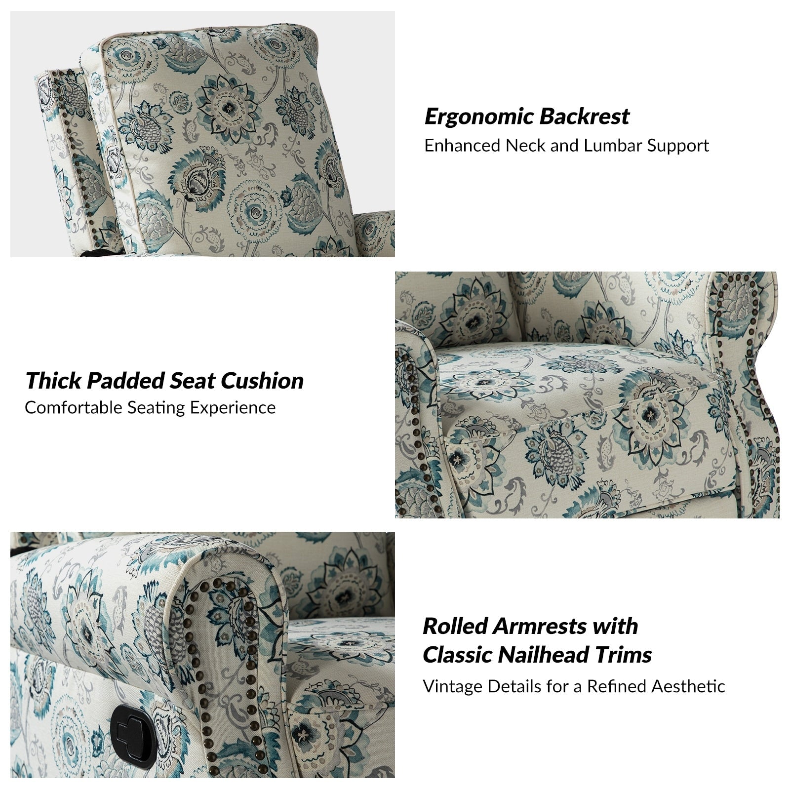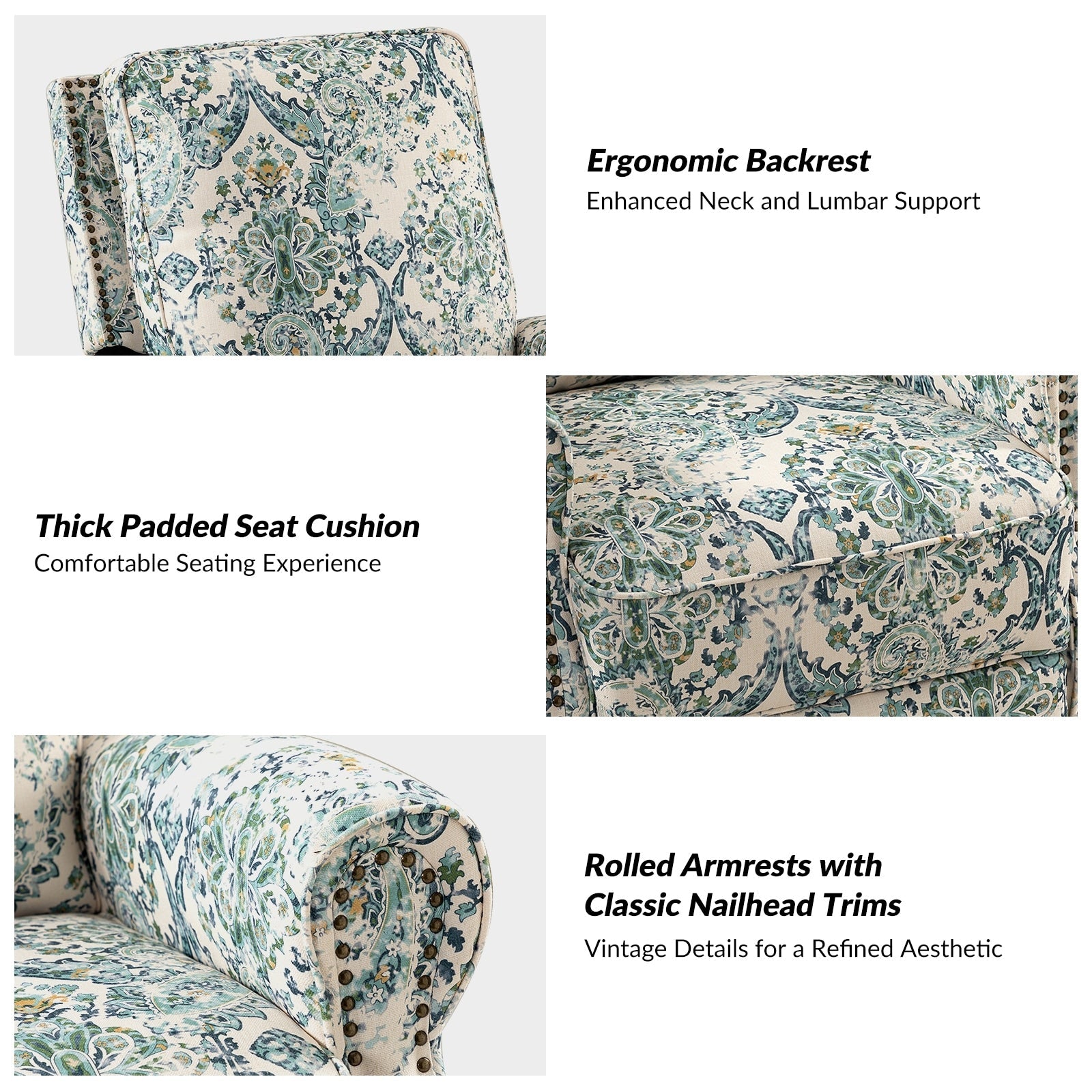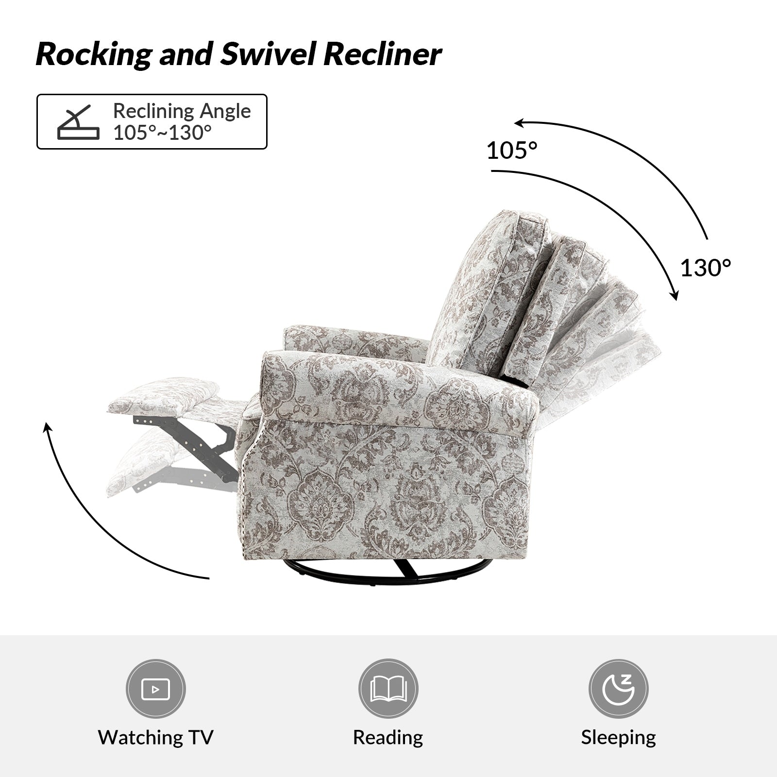 Fauteuil inclinable pivotant à bascule et à imprimé floral Roderich Farmhouse avec accoudoirs roulés, lot de 2 par HULALA HOME