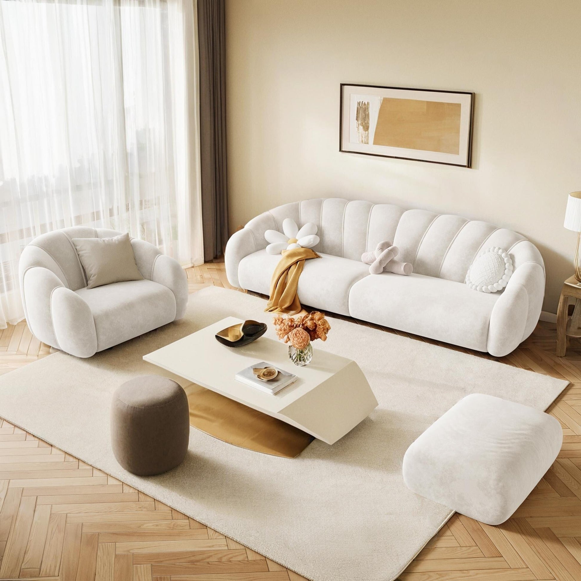 Fabriqué en velours de nouvelle technologie, facile à nettoyer, les gouttes d'eau perlent à la surface du tissu. Il suffit de l'essuyer délicatement. Résistant à l'usure et aux rayures, il est adapté aux enfants et aux animaux domestiques et empêche efficacement les griffes de vos animaux. Rembourré de mousse haute résilience, il offre une sensation enveloppante et confortable. Des pieds de support robustes en acier inoxydable assurent un maintien ferme.