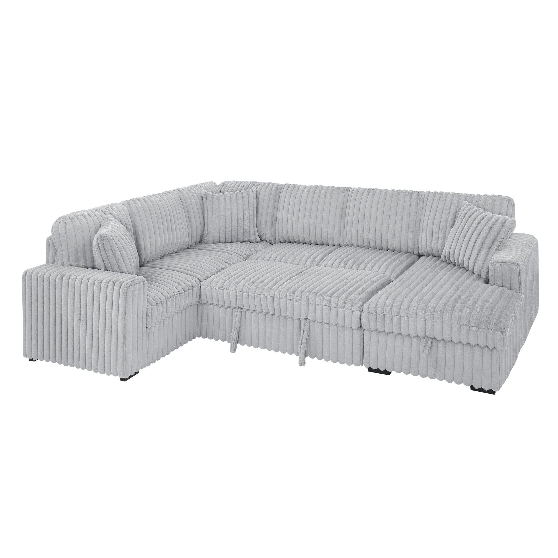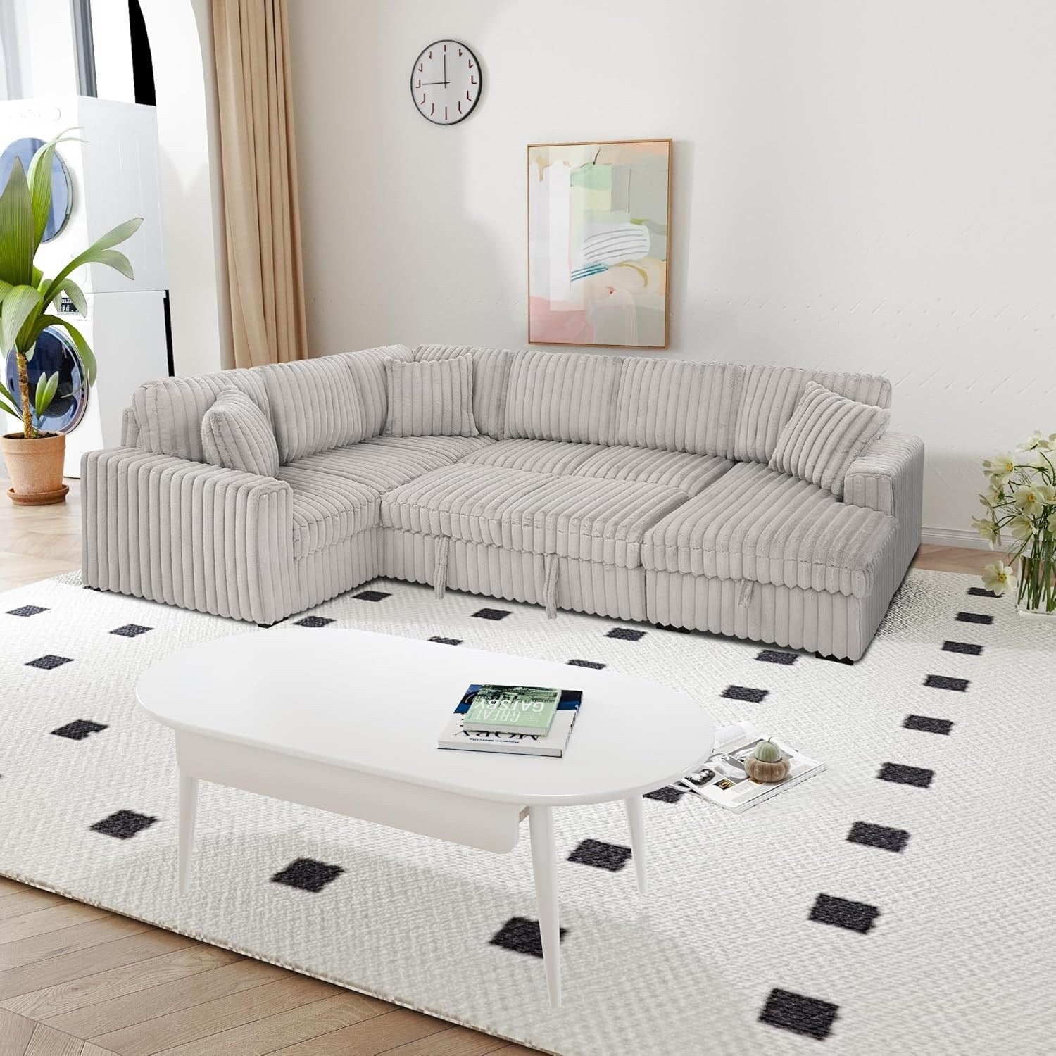Ce canapé-lit d'angle se compose de quatre parties : une méridienne, une causeuse sans accoudoirs avec lit gigogne, une causeuse avec accoudoirs et un canapé d'angle. Facile à assembler, il se transforme en canapé en U ou en lit gigogne, idéal pour un usage quotidien ou pour accueillir des invités inattendus. Idéal pour les petits espaces comme les appartements ou les salons.
