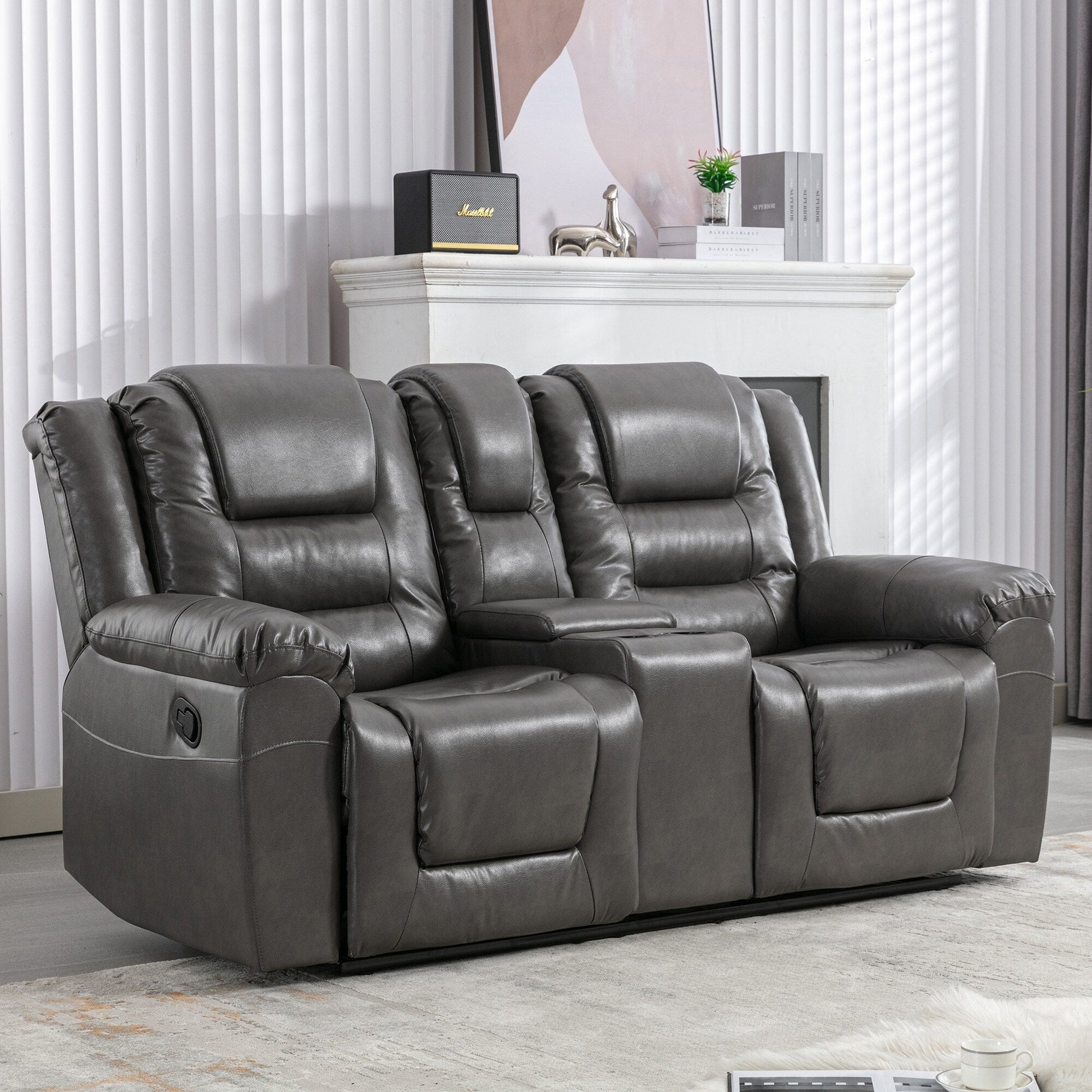Fauteuil inclinable manuel 2 places pour home cinéma Roomfitters, avec coffre de rangement et porte-gobelets, gris