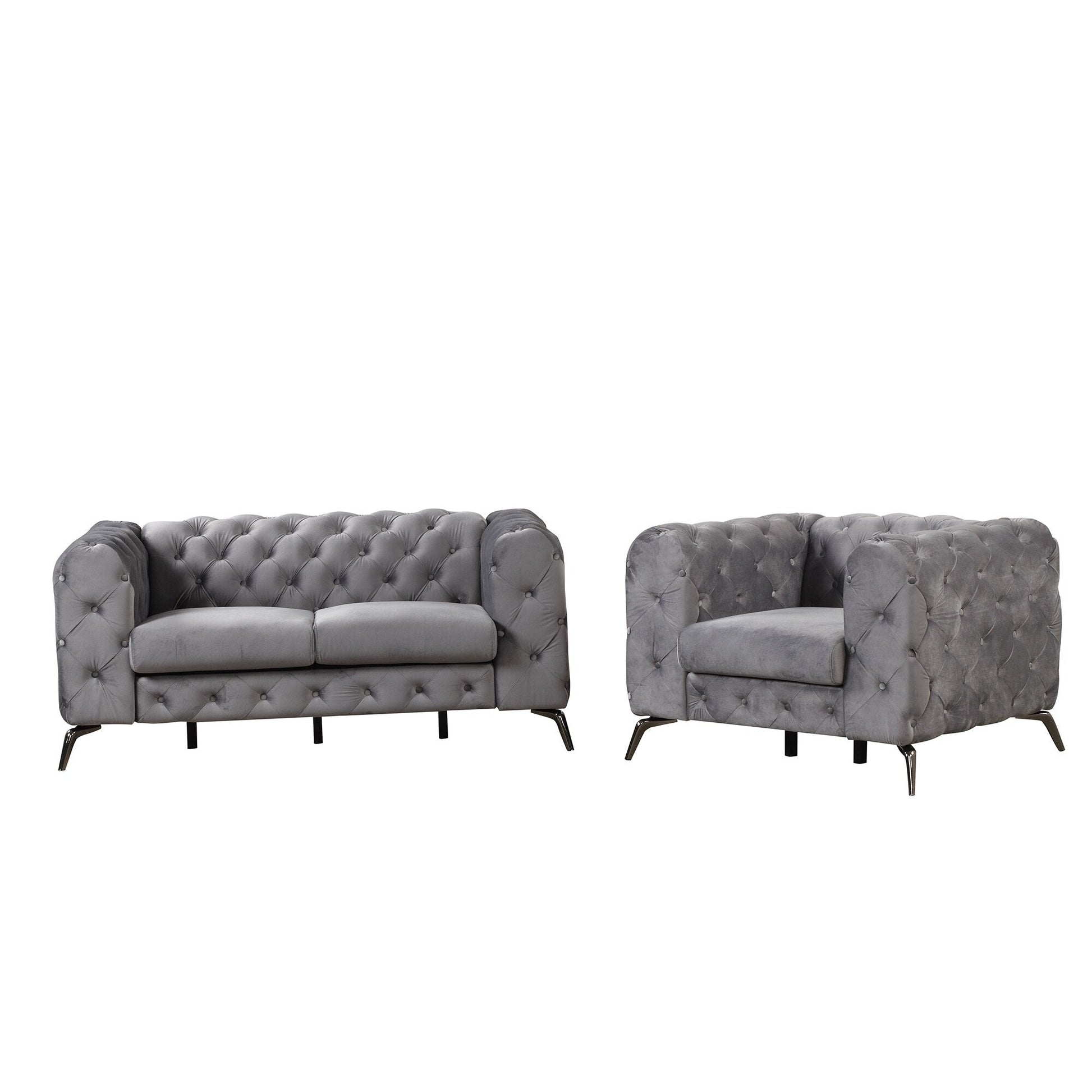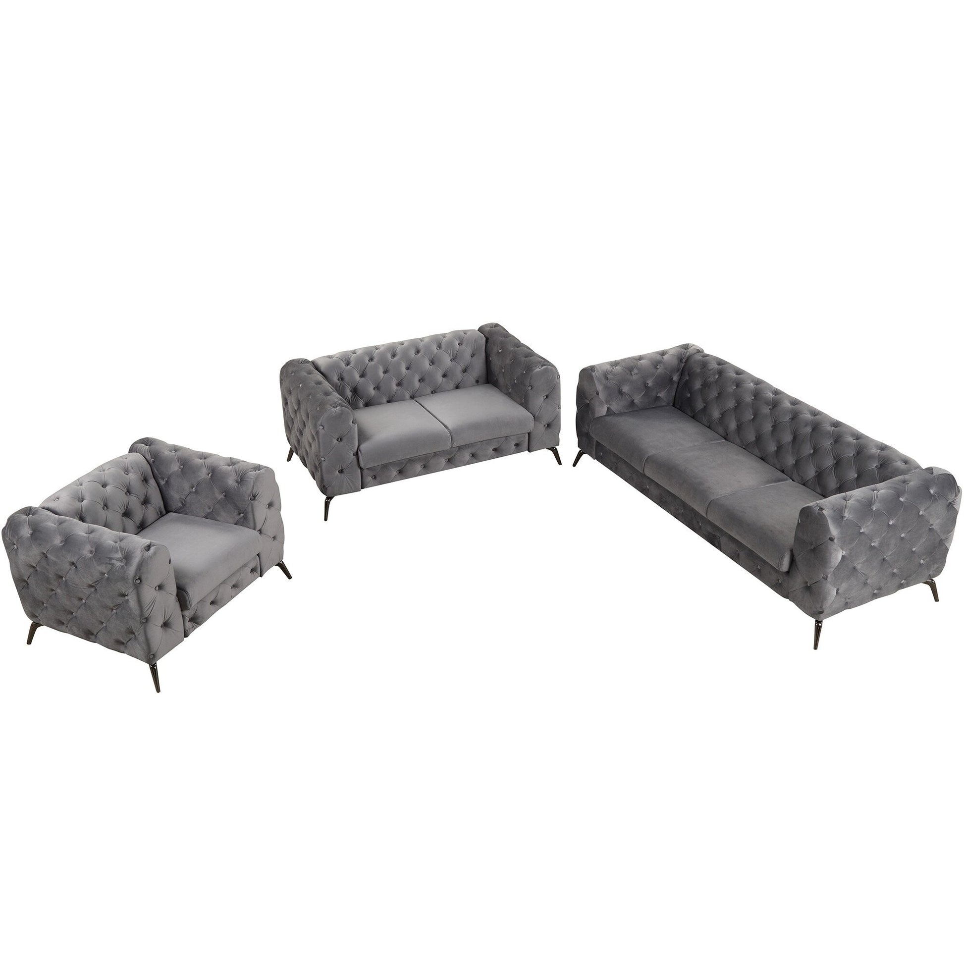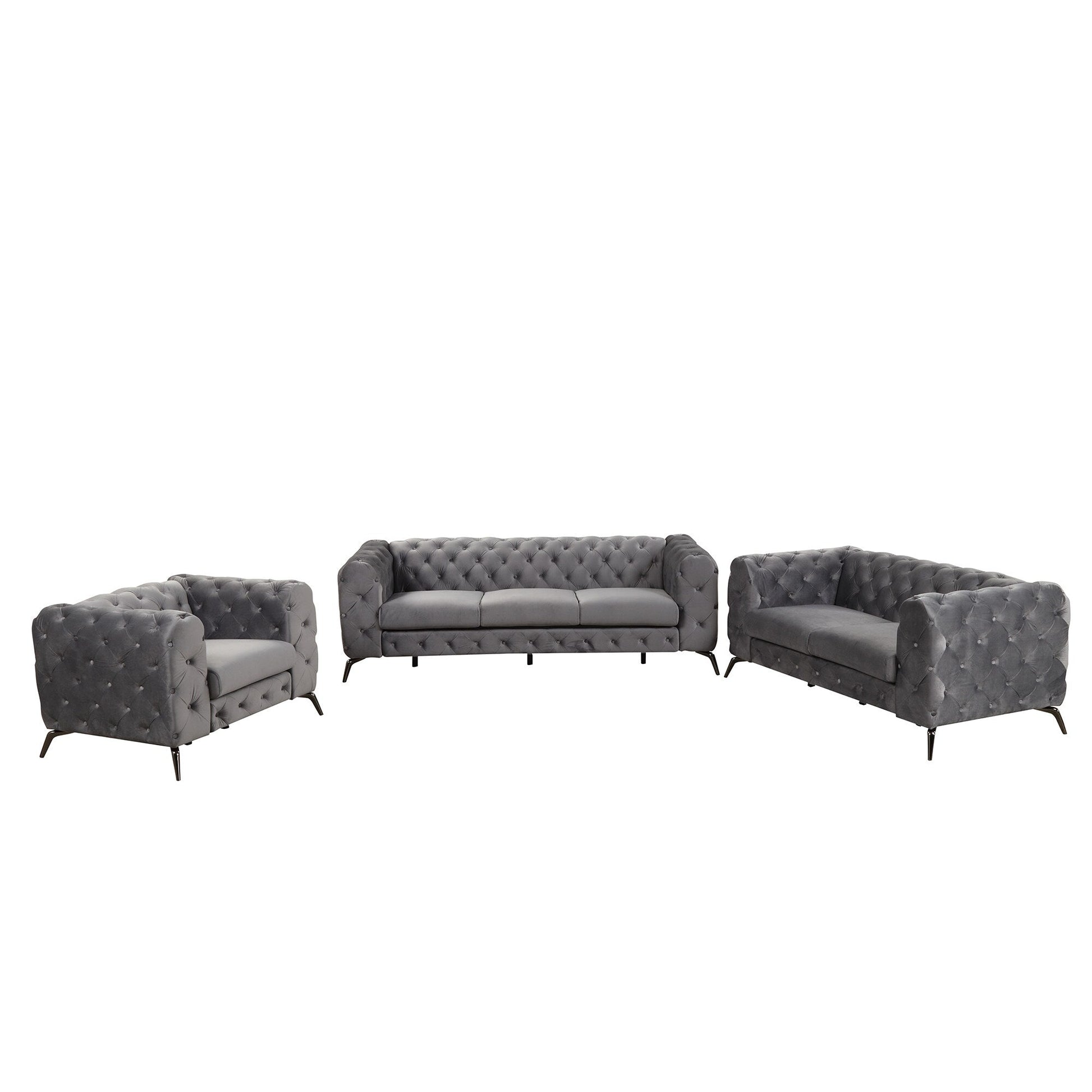Ensemble de canapés rembourrés en velours 3 pièces Roomfitters avec pieds en métal robustes, comprenant un canapé trois places, une causeuse et une chaise simple