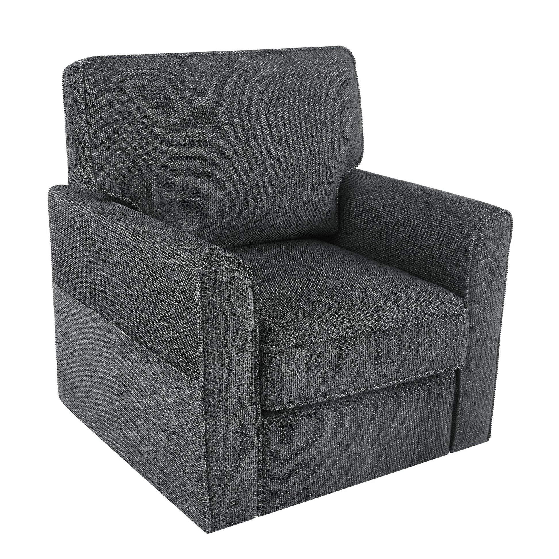 Fauteuil d'appoint pivotant à 360° rembourré Roomfitters avec poches latérales pour salon, chambre, bureau, hôtel