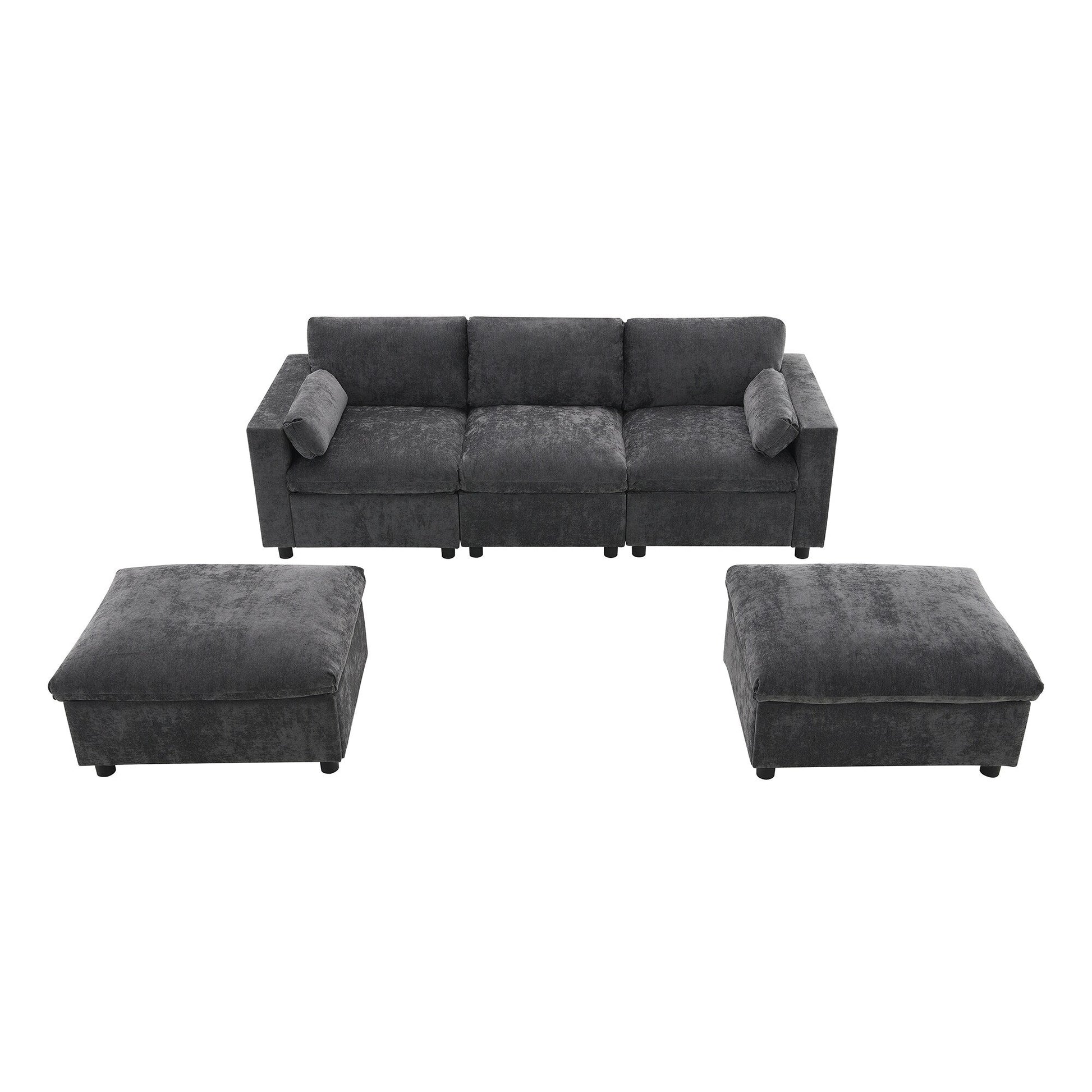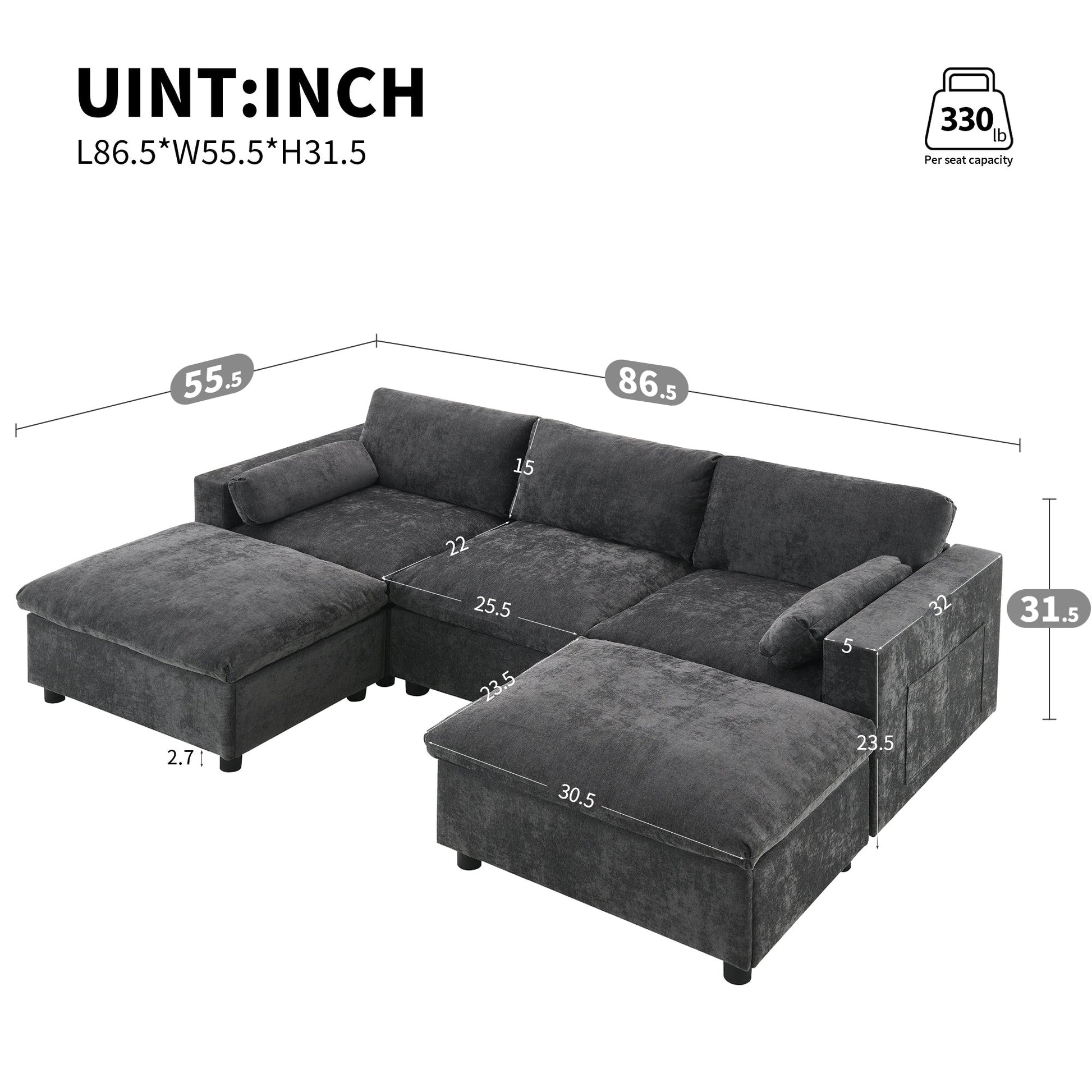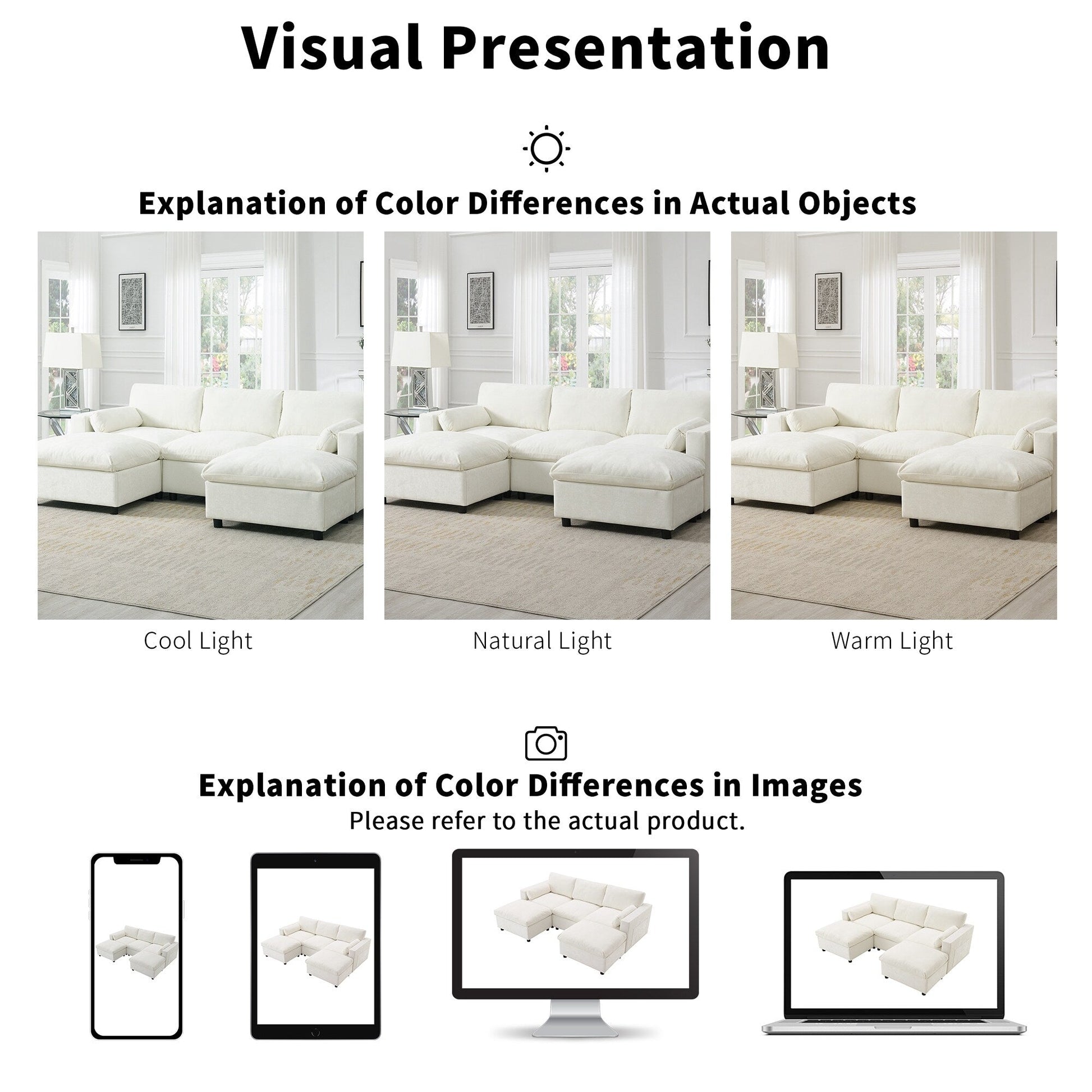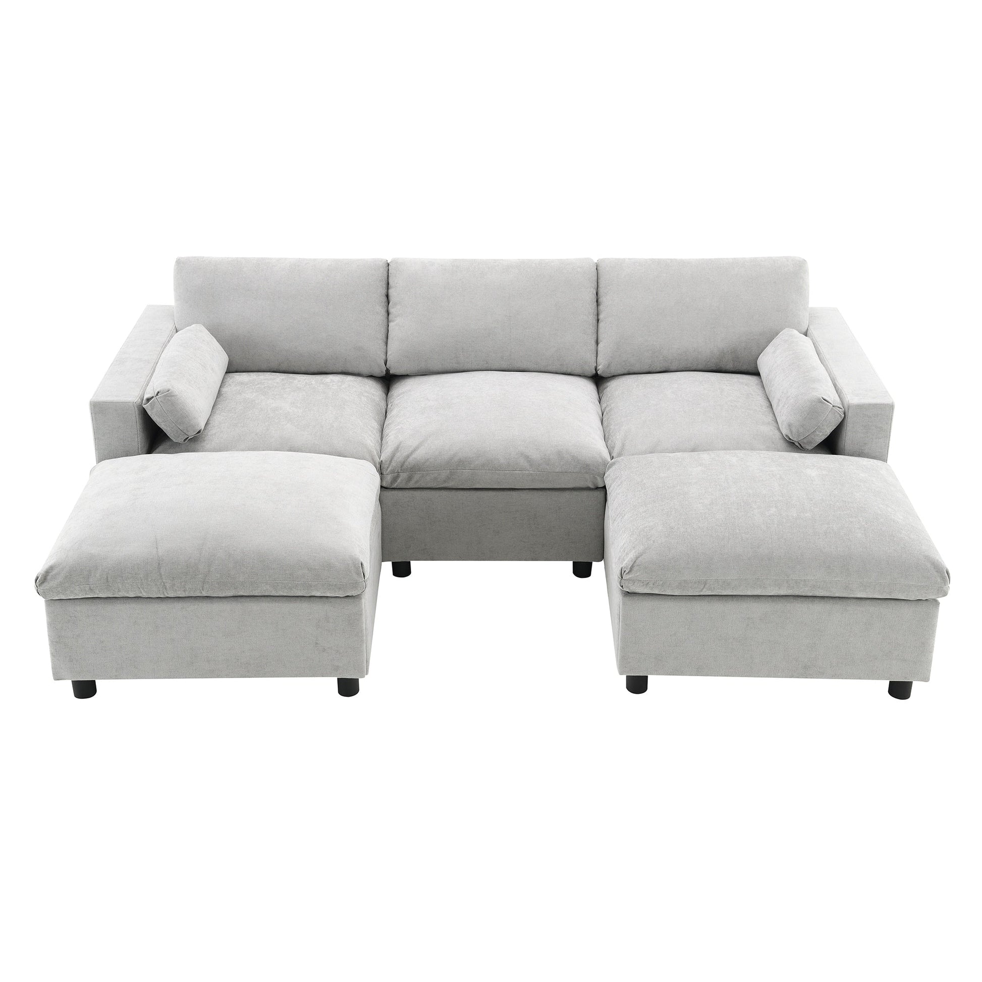 Canapé modulable sectionnel Roomfitters 86,5 en chenille, poches de rangement, canapé 5 places en U avec oreillers et 2 poufs