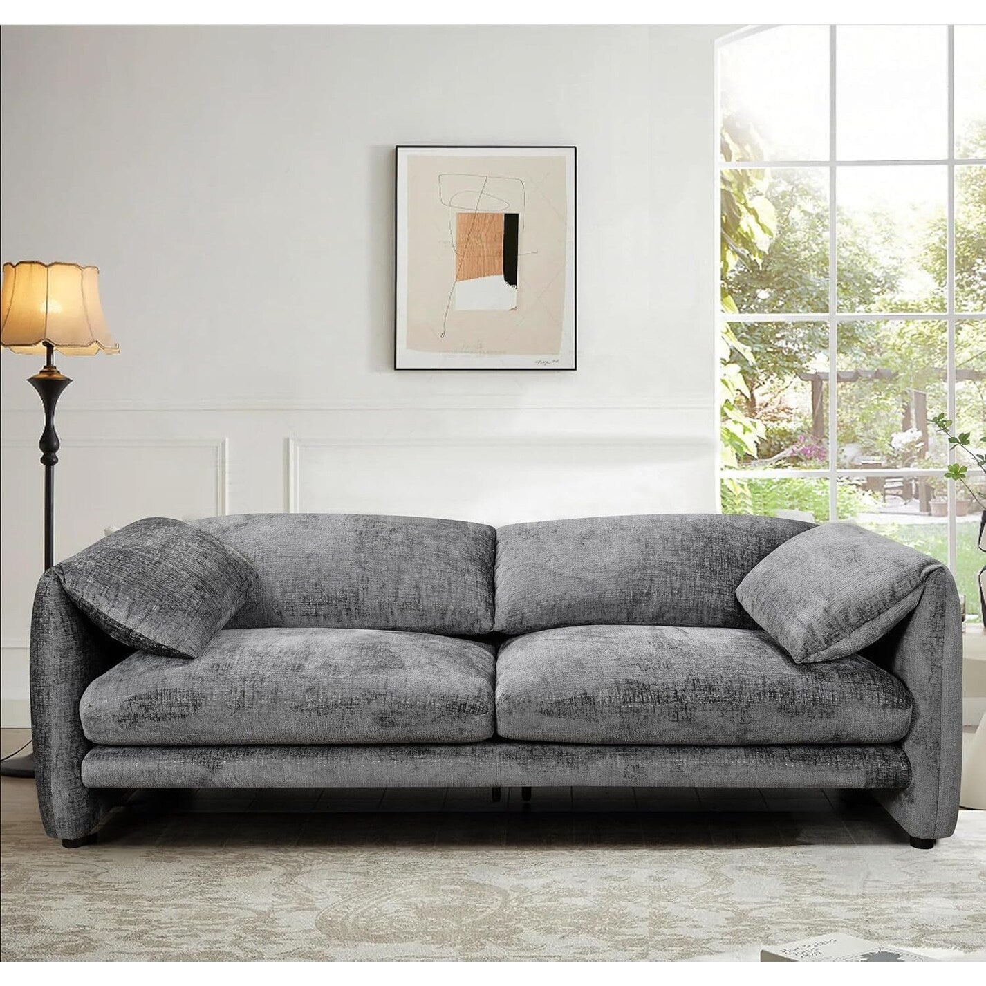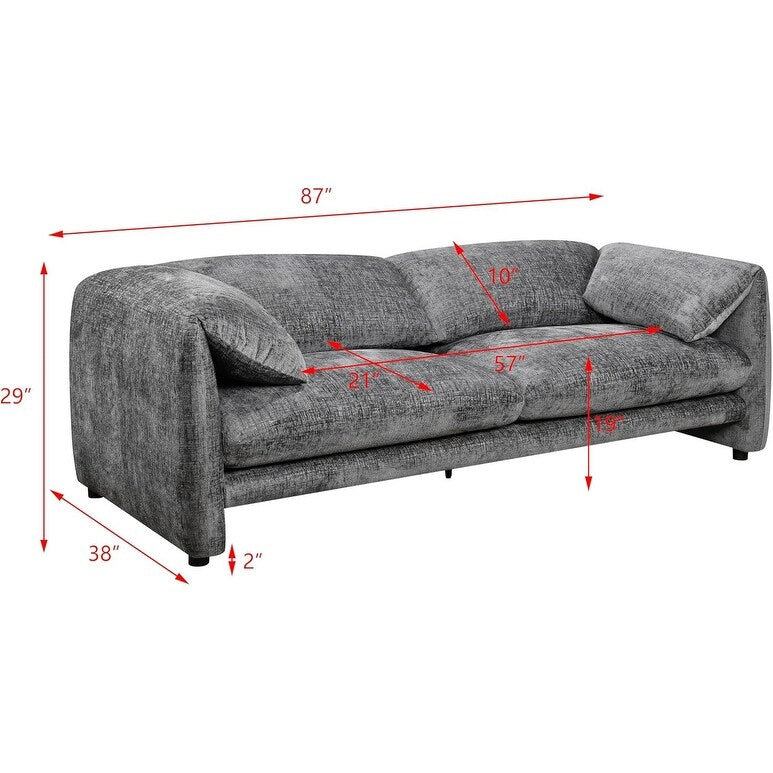 Découvrez l'alliance parfaite du style et du confort avec le canapé 3 places Roomfitters 87'. Doté d'accoudoirs larges et confortables, de coussins moelleux et de dossiers en mousse haute densité, ce canapé offre une détente incomparable à votre famille et à vos invités. Son assise spacieuse et son design élégant en font un excellent ajout au salon ou à la chambre, s'intégrant parfaitement à un décor moderne tout en garantissant un confort optimal pour des moments de détente prolongés. Fabriqué à partir de matériaux durables, ce canapé garantit longévité et élégance. L'assemblage rapide avec les outils fournis garantit une installation sans tracas. Capacité : Siège : 227 kg ; Poids net : Canapé : 52 kg ; Assemblage : Assemblage par un adulte requis : Oui ; Temps de montage : Environ 30 minutes ; Matériau : Revêtement : Mousse + polyester ; Structure : Robuste et durable. Dimensions : Dimensions du produit : L 87' x l 38' x H 28'