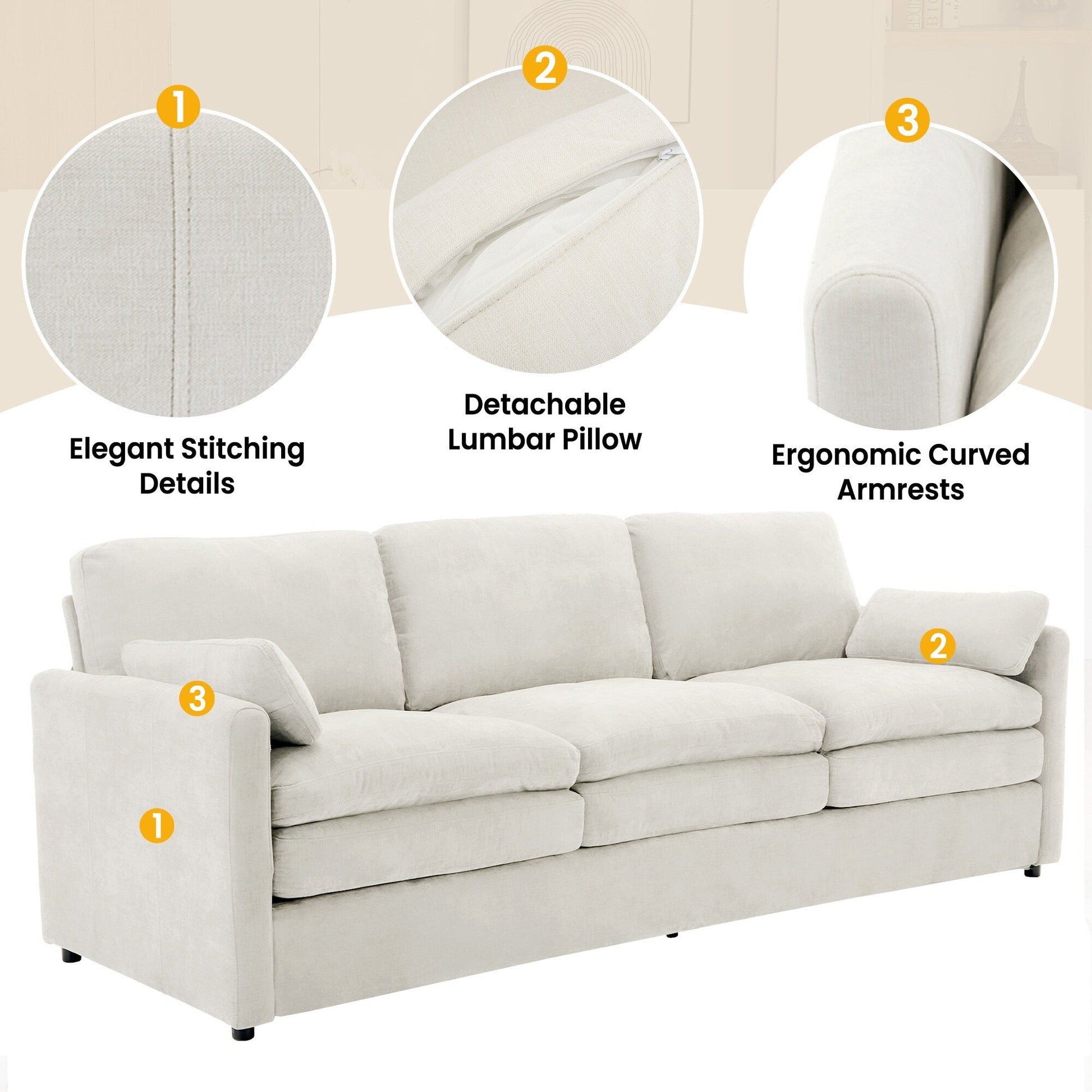 - Enveloppé de chenille ultra-douce, ce canapé 3 places offre une texture moelleuse et raffinée qui procure une sensation de luxe et résiste à l'usure quotidienne, parfait pour les espaces de vie modernes.