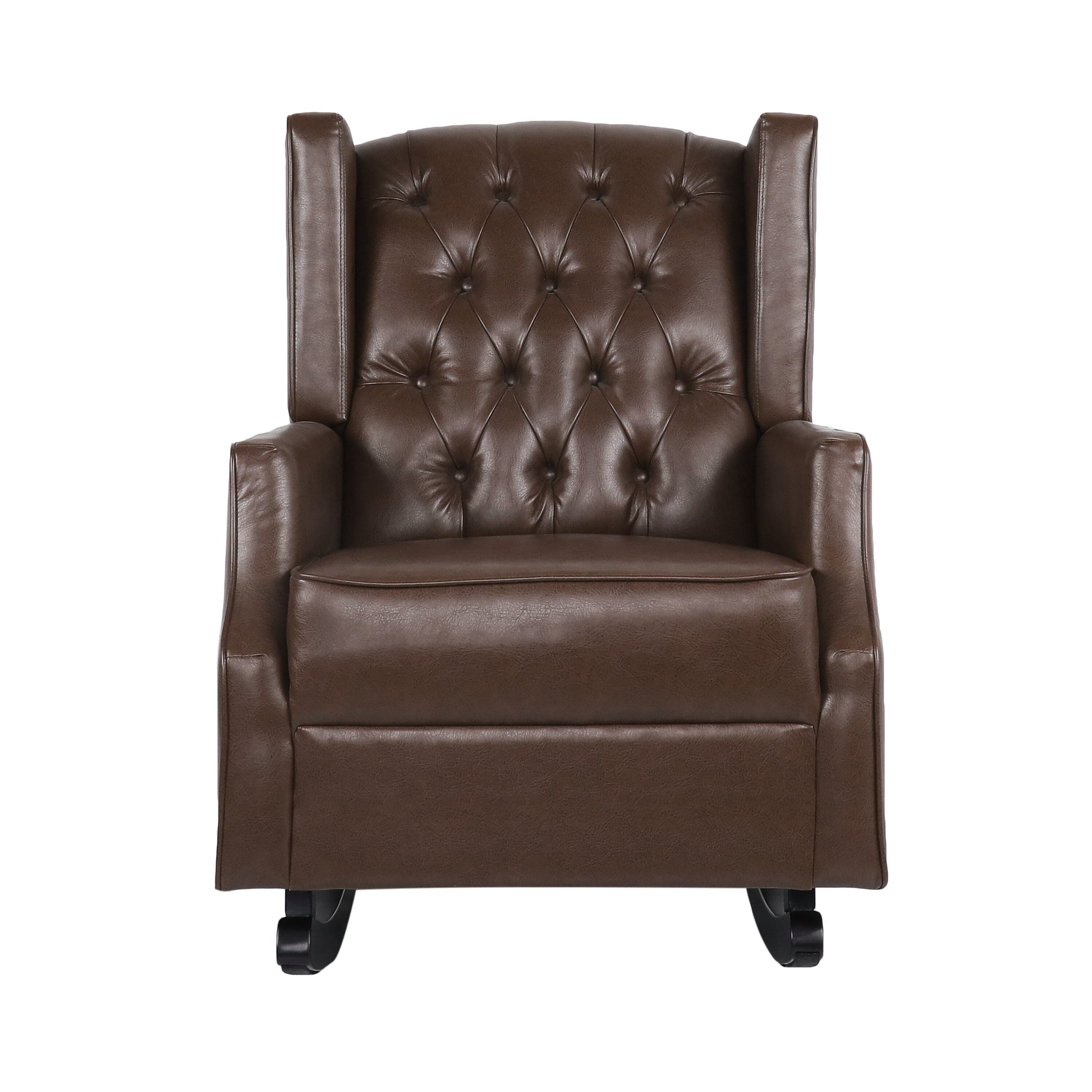 Fauteuil à bascule en similicuir Roomfitters avec capitonnage à boutons et design à oreilles, chaise d'appoint rembourrée pour chambre d'enfant