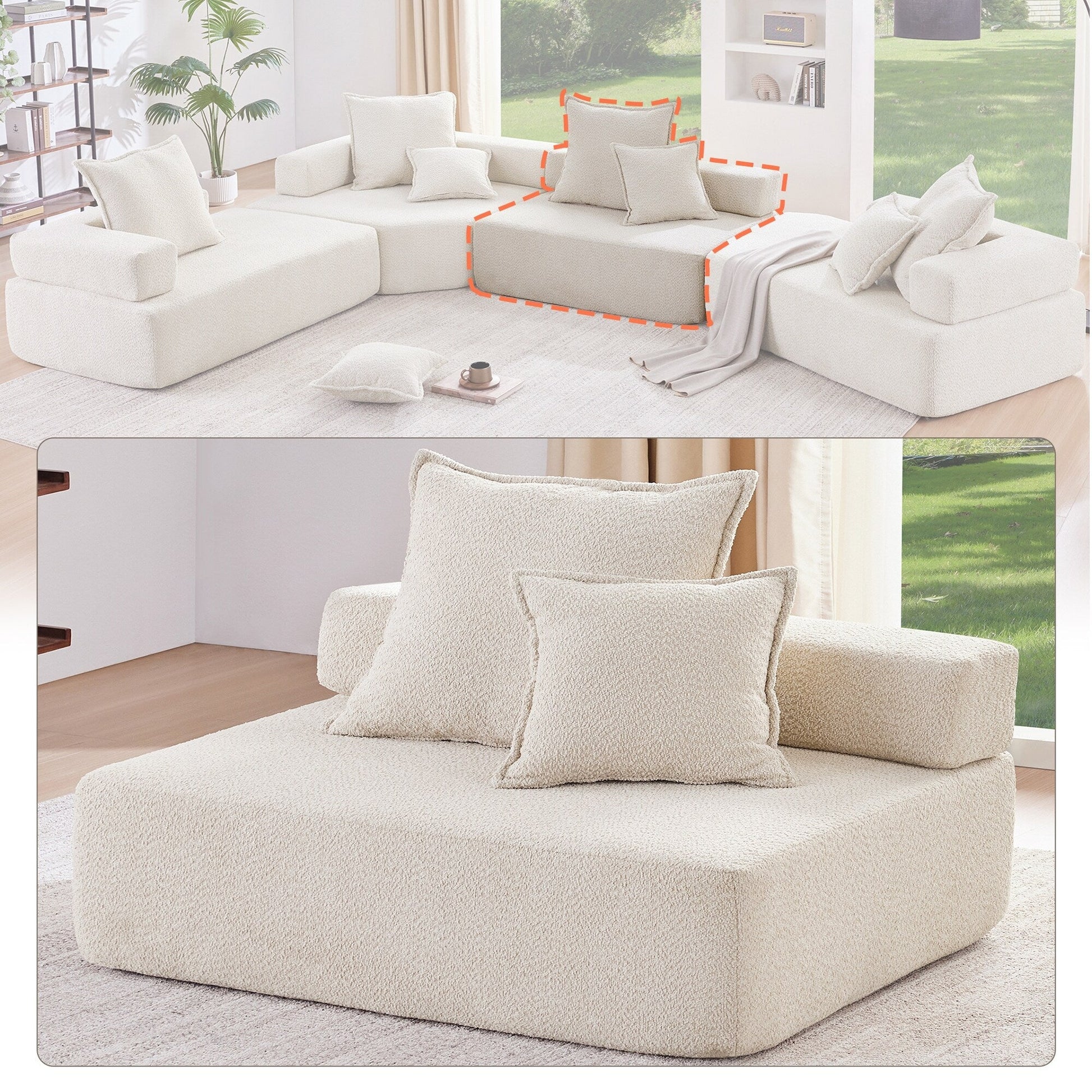 Structure de causeuse Roomfitters pour canapé sectionnel modulaire surdimensionné, canapé convertible capitonné en tissu Boucle, beige