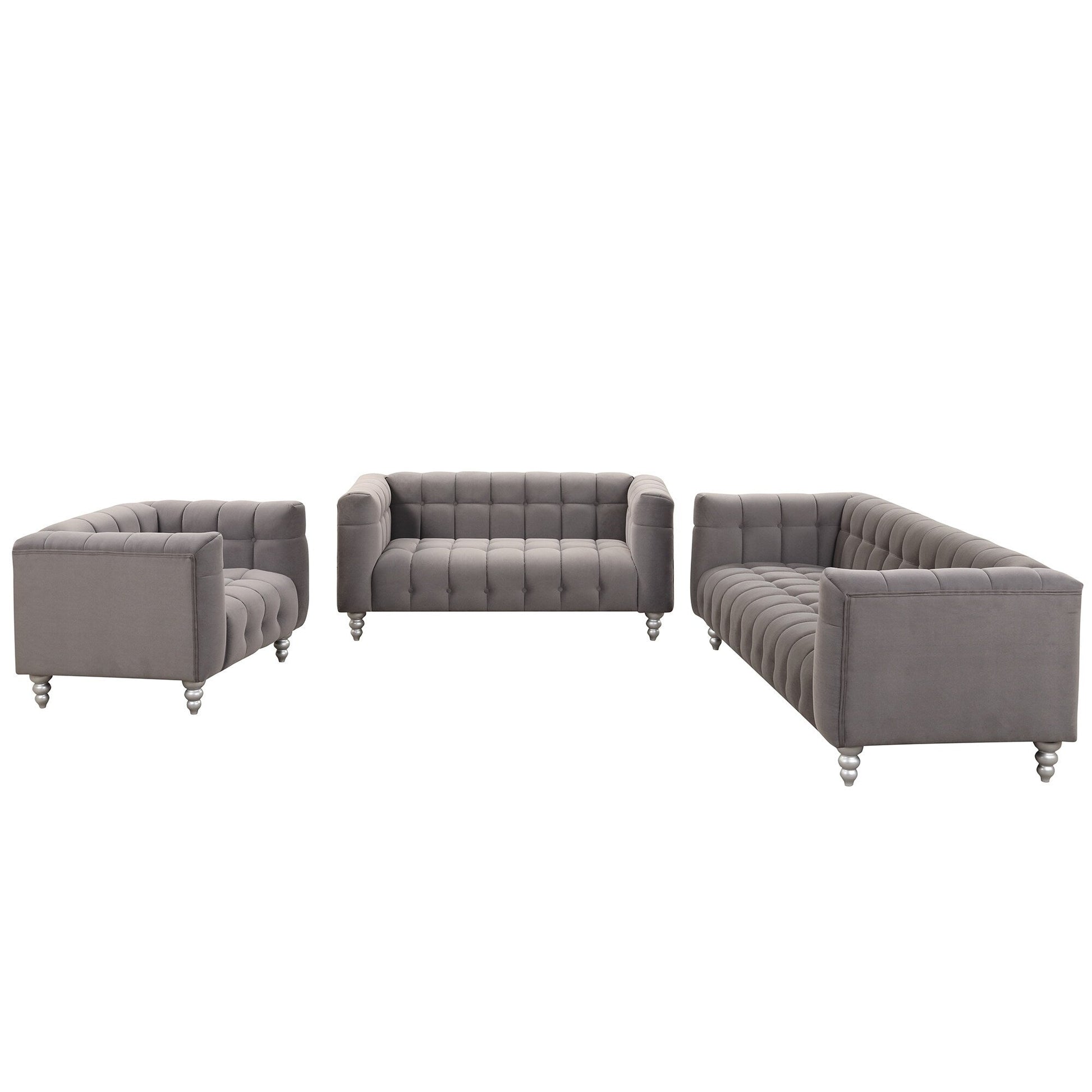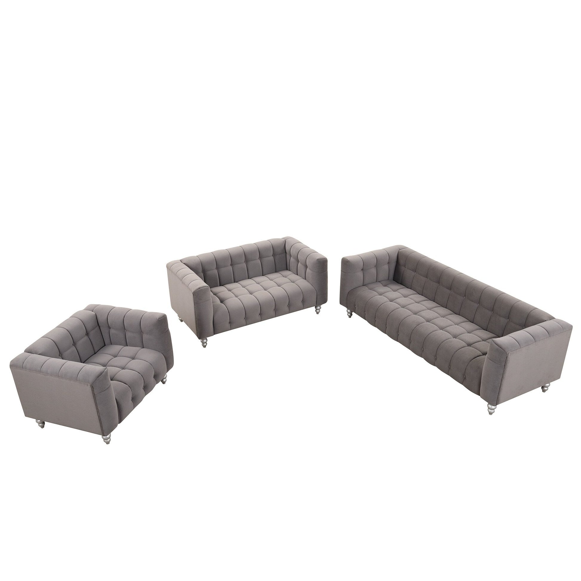 Ensemble de canapé moderne 3 pièces Roomfitters avec pieds en bois massif, dossier capitonné boutonné, ensemble de canapé rembourré en polaire hollandaise