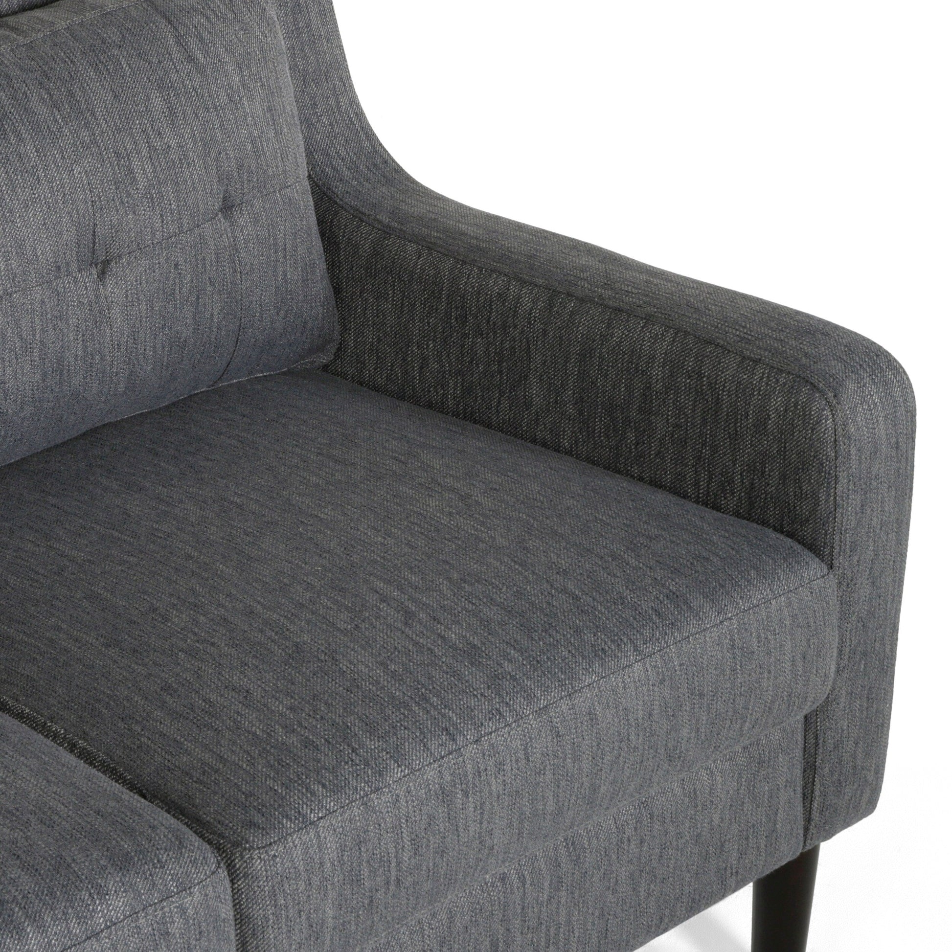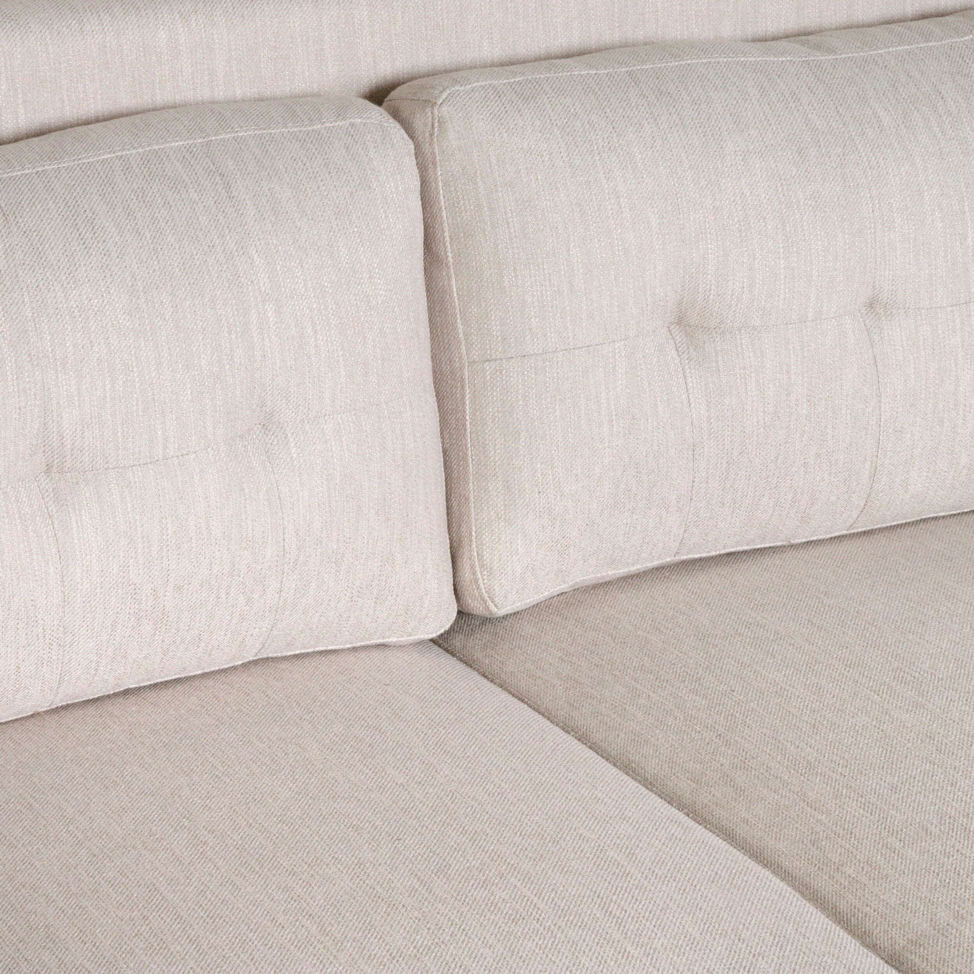 - Détails élégants : les accoudoirs inclinés, les coussins de dossier touffetés et le motif à points gaufrés ajoutent de la texture et du raffinement, tandis que les pieds fuselés offrent une finition élégante et stylée.