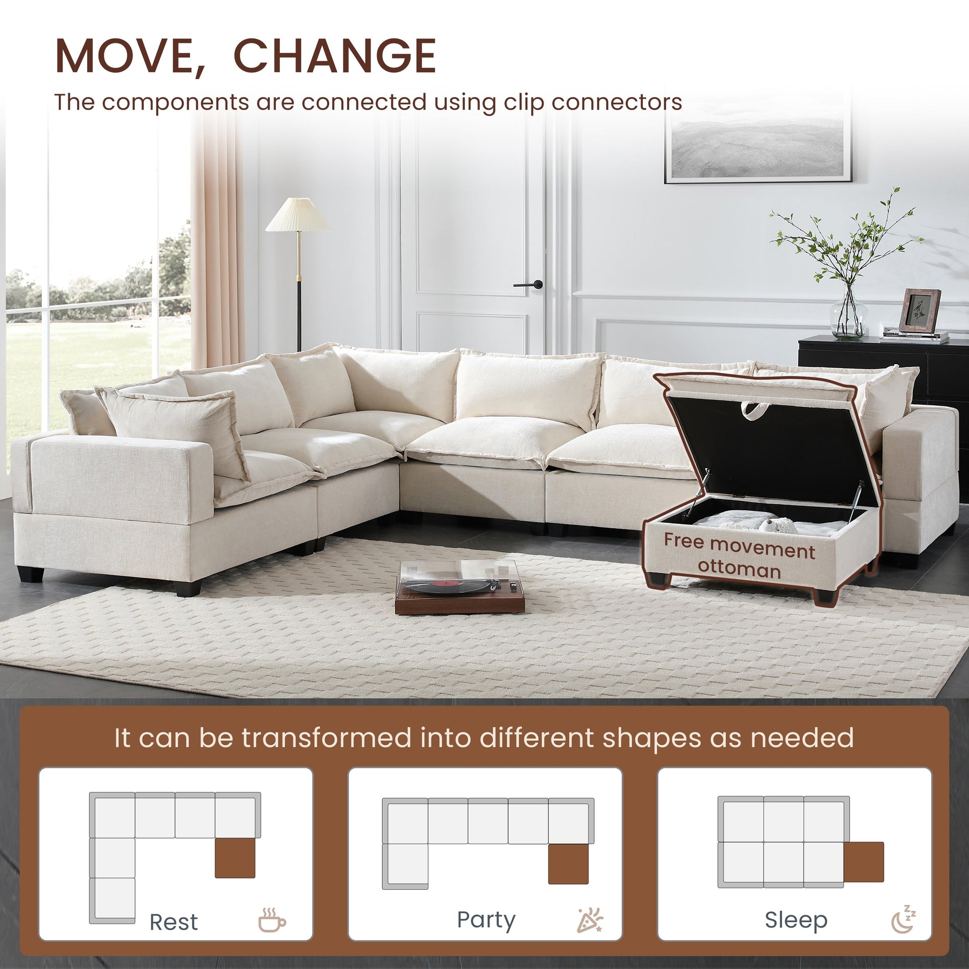 Canapé modulaire en chenille en forme de U avec pouf de rangement, aménagement libre, 7 places, grand format, pour salon
