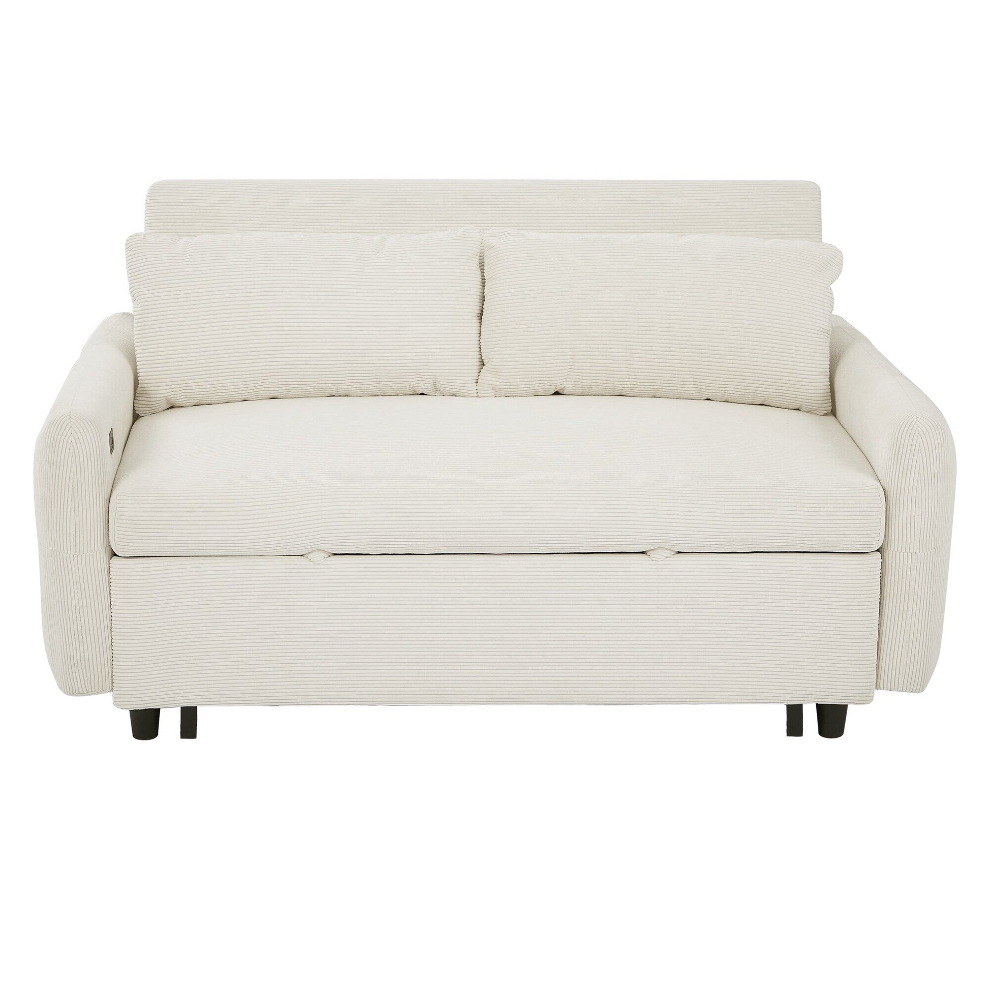Canapé-lit convertible 2 places Roomfitters avec coussins décoratifs et ports USB, canapé-lit moderne, beige