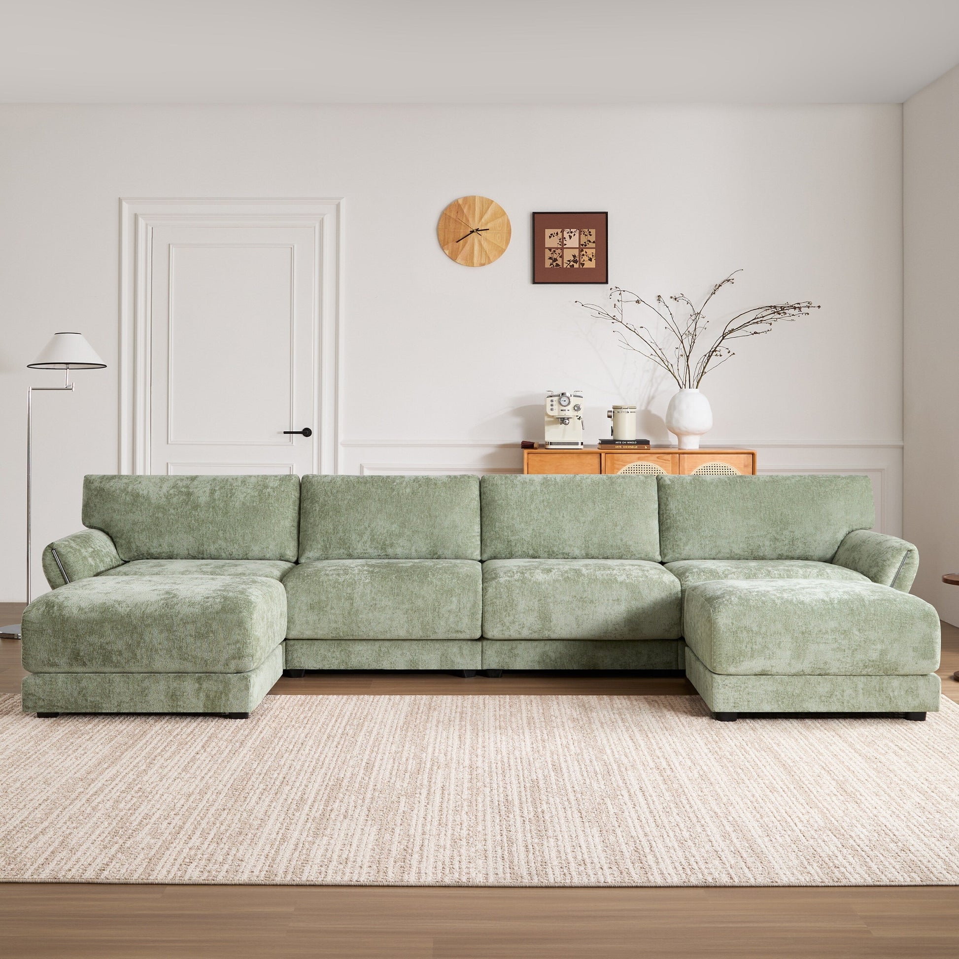 Canapé modulaire en chenille en forme de U Roomfitters avec assise large, chargeur USB Type-C et pouf, accoudoir en pétale