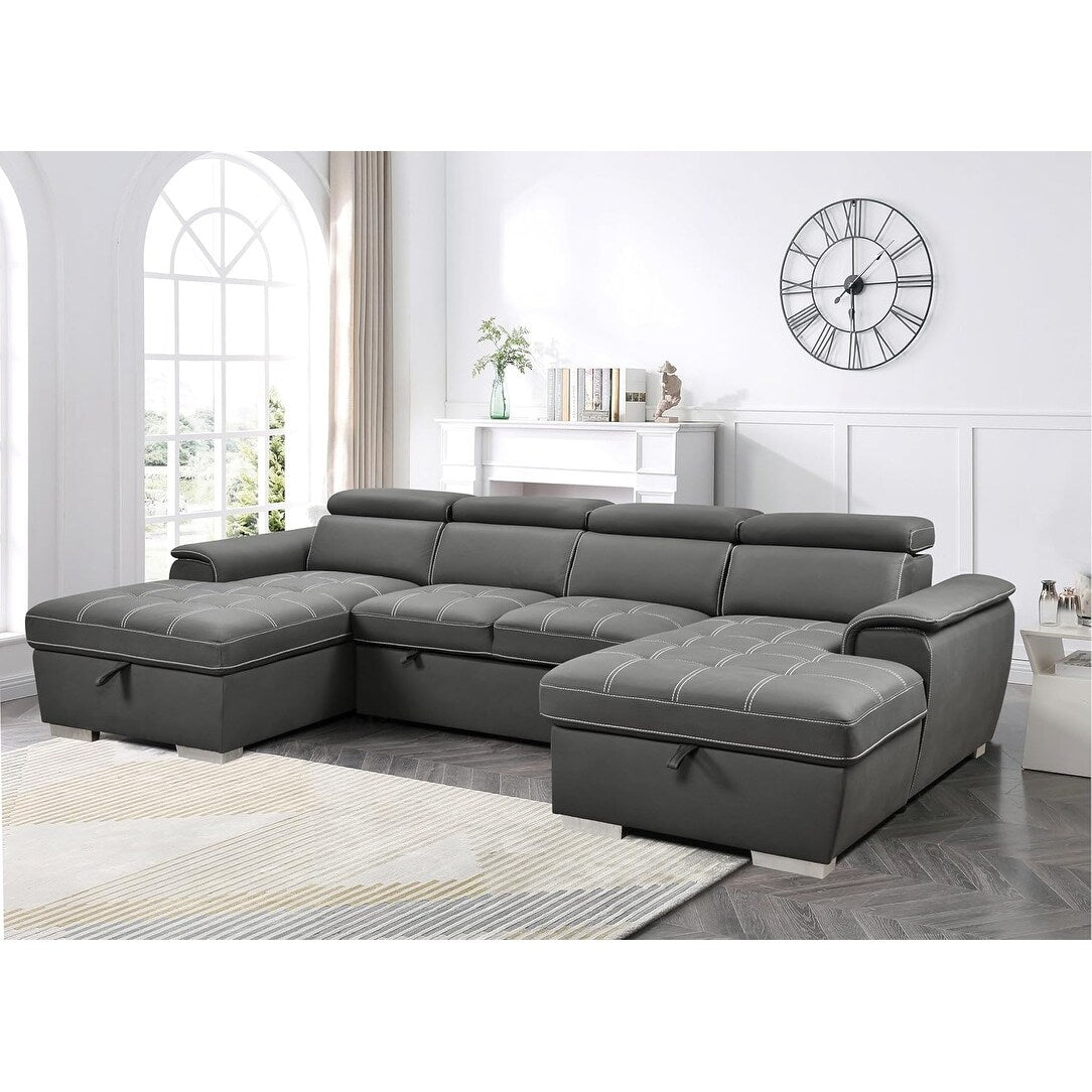 Canapé-lit en U Roomfitters, lit gigogne surdimensionné 2 en 1 de 121 pouces, canapé sectionnel avec double méridienne de rangement