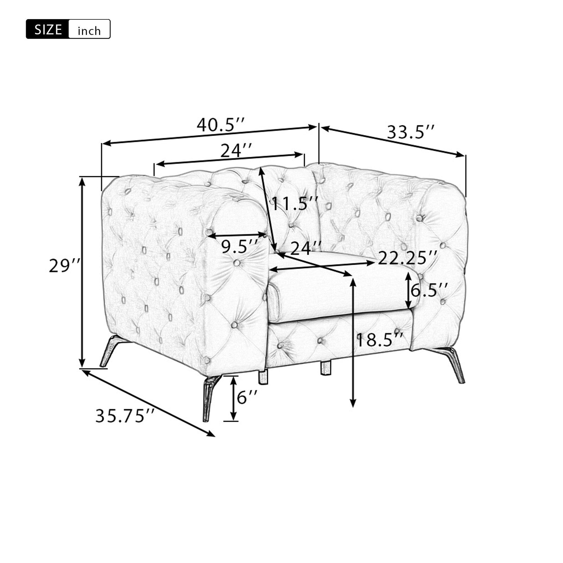 Canapé d'appoint rembourré en velours Roomfitters, fauteuil simple avec dossier capitonné à boutons pour salon et chambre