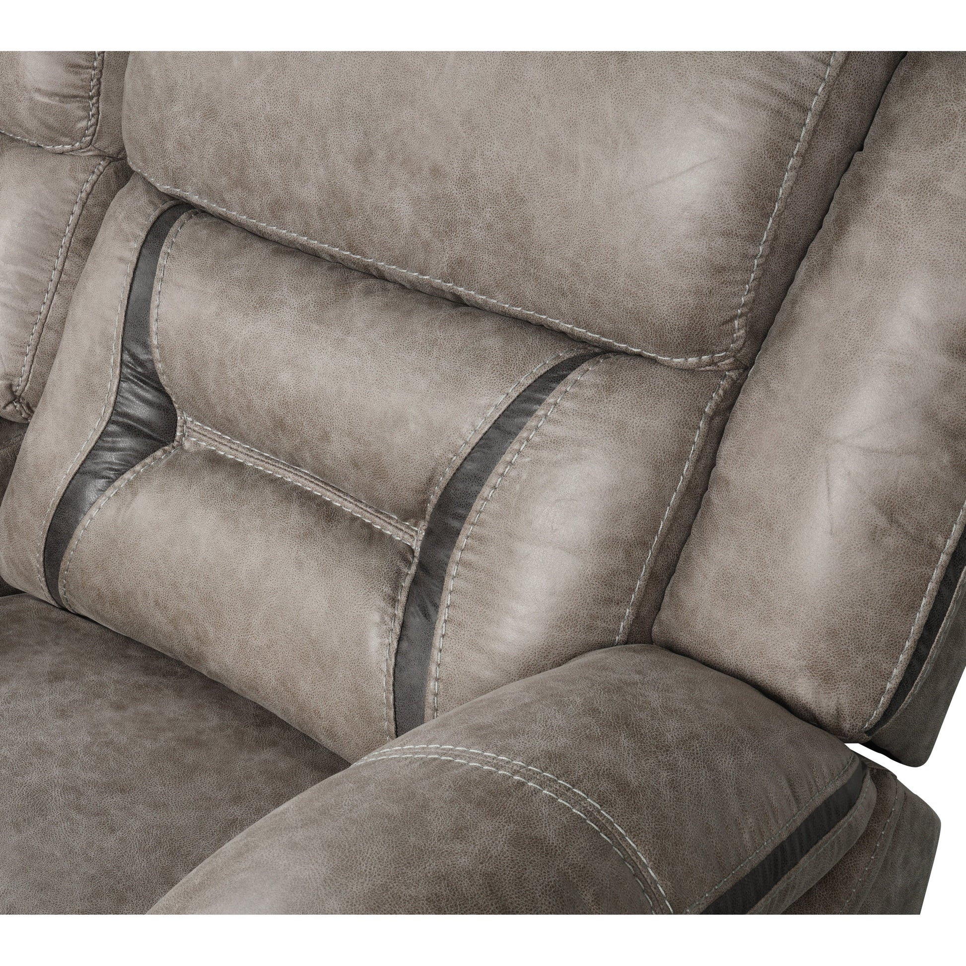 - Des coutures audacieuses soulignent le style, le canapé est composé d'un revêtement 100 % polyester dans votre choix de couleur châtain foncé ou taupe, avec des détails en charbon de bois sur le dossier et les côtés