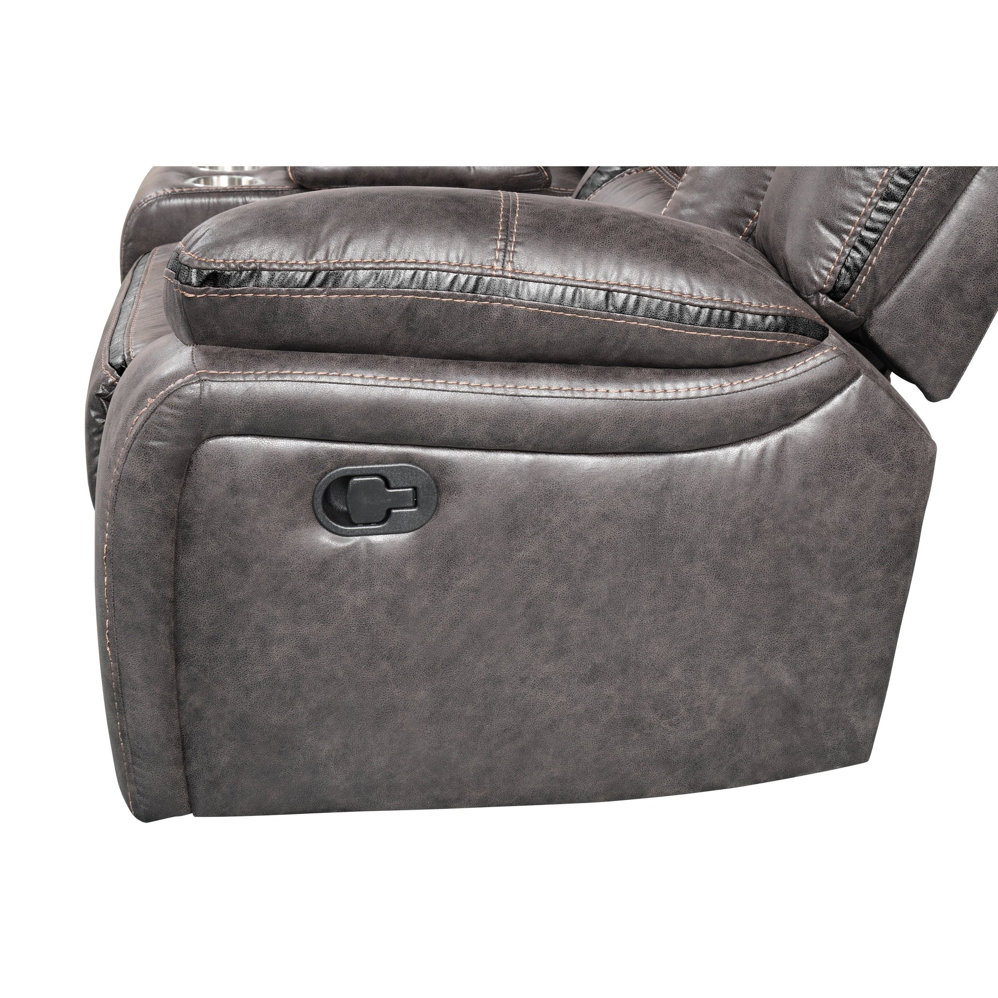 Pour vous détendre, détendez-vous comme vous le souhaitez grâce au canapé inclinable manuel Elkton. Ce magnifique canapé est doté d'un mécanisme d'inclinaison manuel facile à utiliser pour vous détendre après une longue journée. Ses caractéristiques de confort classiques incluent des appuie-têtes rembourrés, des accoudoirs coussinés et des leviers d'inclinaison manuels idéalement situés sur les côtés. Gardez votre boisson à portée de main grâce à l'un des élégants porte-gobelets en acier inoxydable, et les prises électriques situées près de la console vous permettent de recharger facilement vos appareils électroniques en permanence.