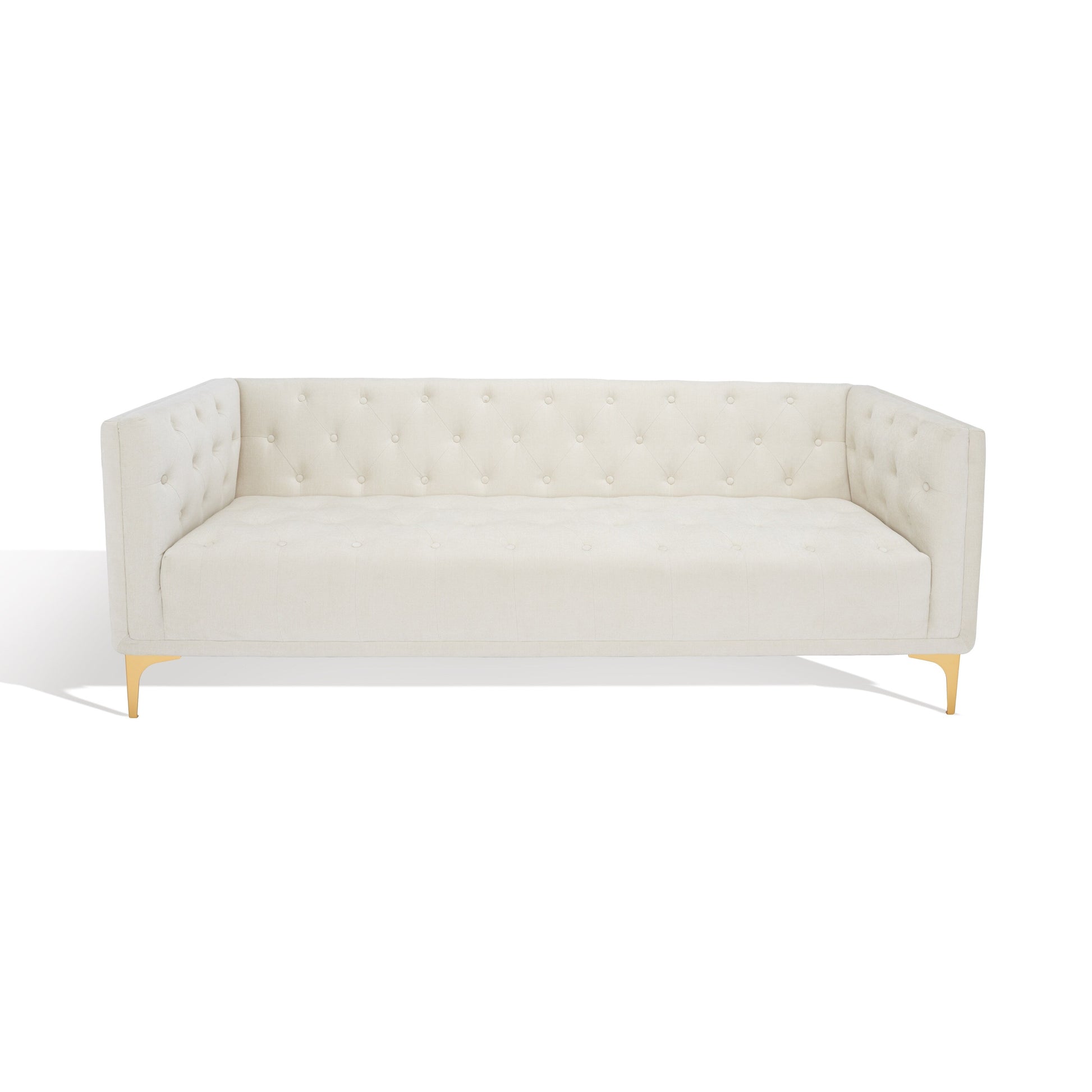 Ce canapé capitonné contemporain allie avec brio lignes minimalistes et détails saisissants, apportant une élégance moderne à tout salon. Son revêtement crème moelleux offre un confort chaleureux, tandis que ses pieds métalliques rayonnants apportent une touche de sophistication. Ensemble, ils créent une pièce maîtresse élégante qui sublime instantanément votre espace.