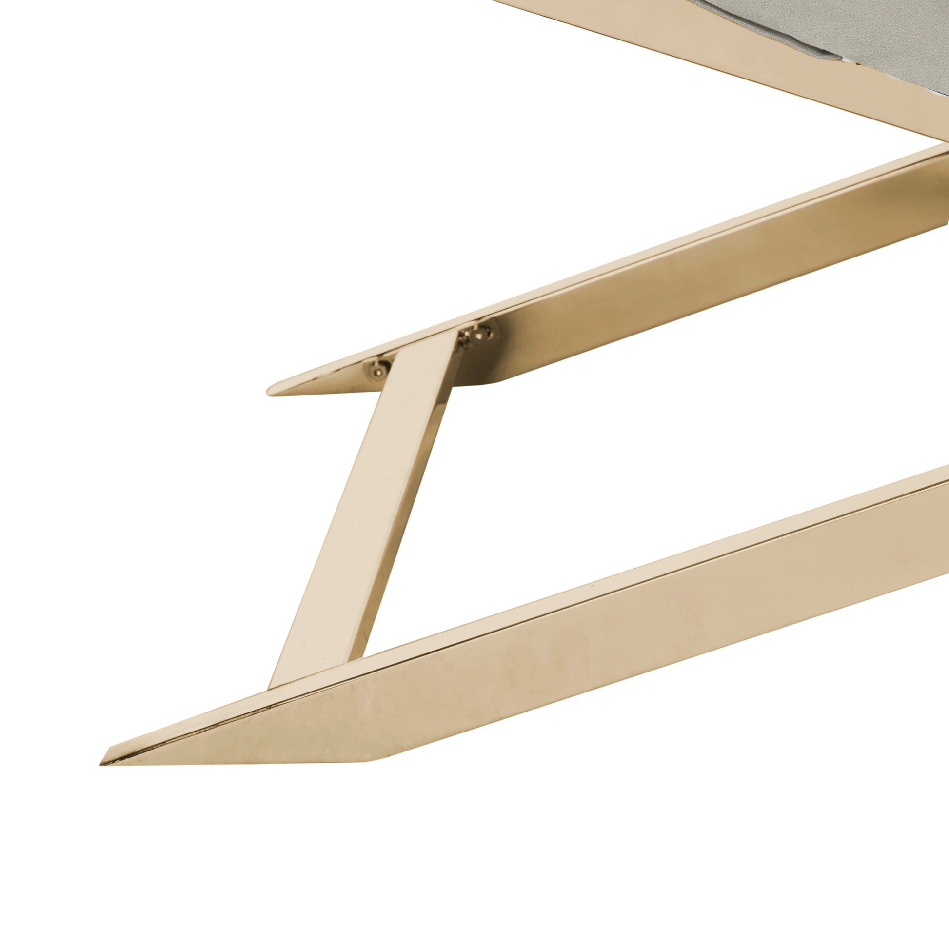 C'est un spa de Gstaad qui a inspiré cette luxueuse méridienne contemporaine avec coussin appuie-tête. Son élégante finition plaquée or s'associe à un revêtement en velours capitonné moelleux d'un gris apaisant pour créer une oasis de détente raffinée dans le salon ou la chambre.