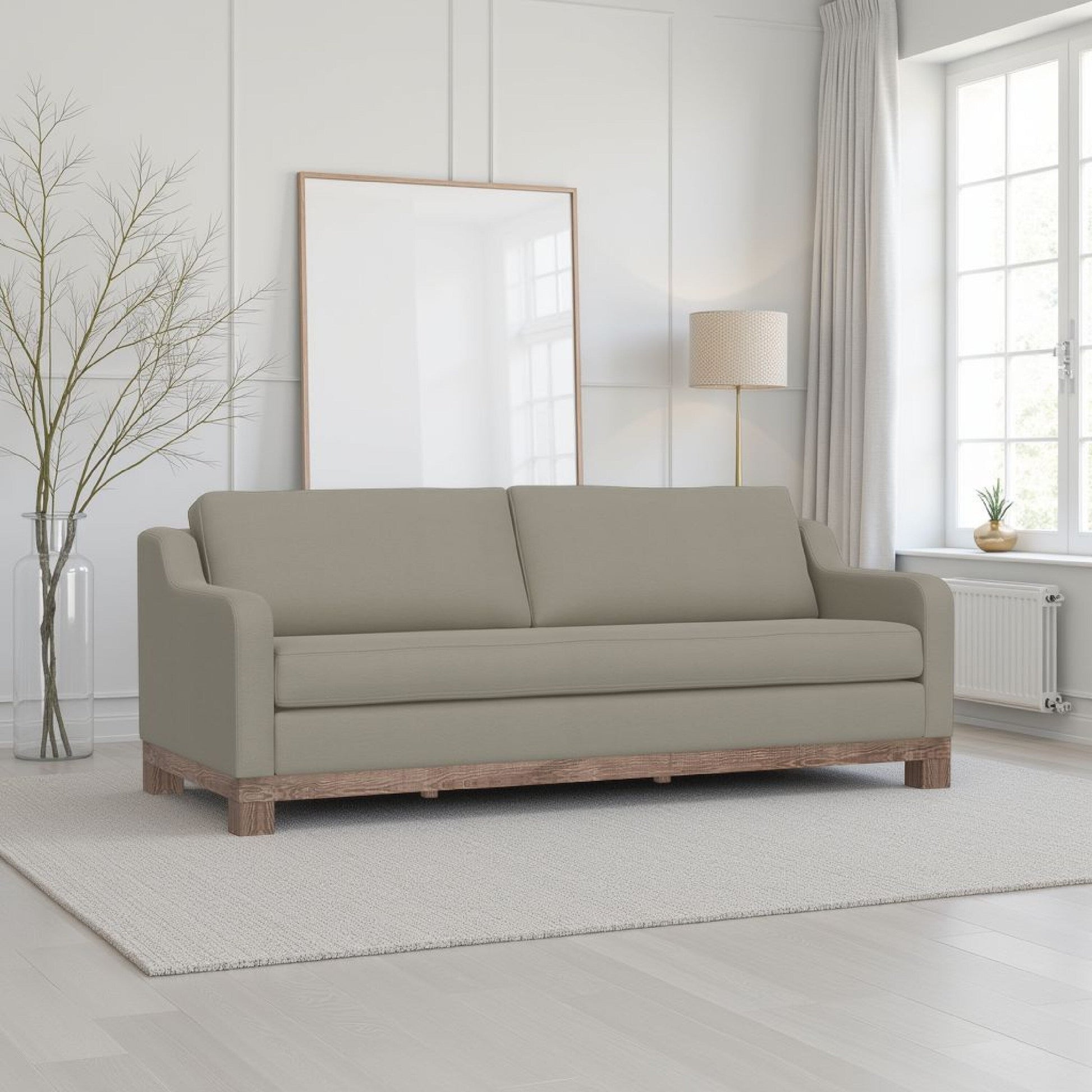 Canapé Sama, 2 coussins, 230 cm, assise style banc, polyester gris amande