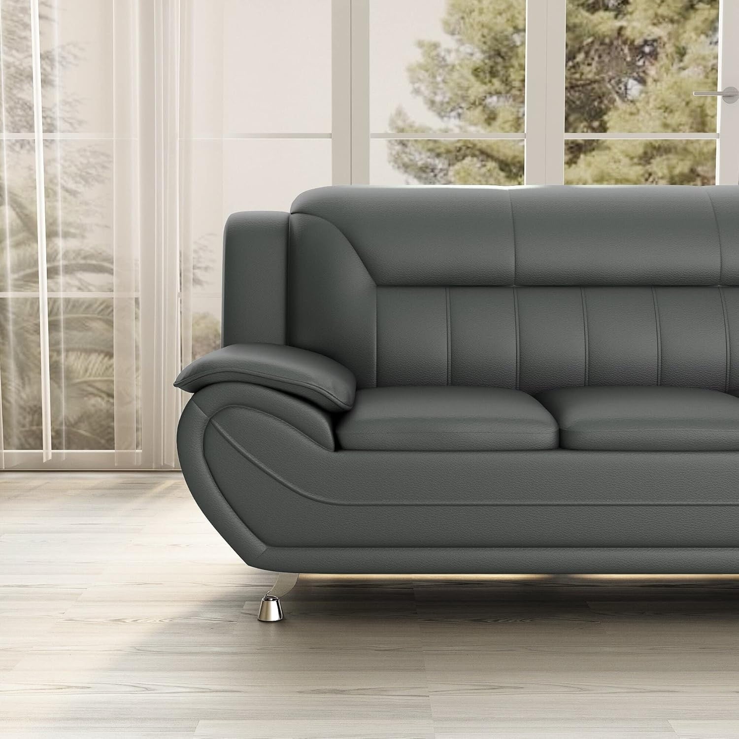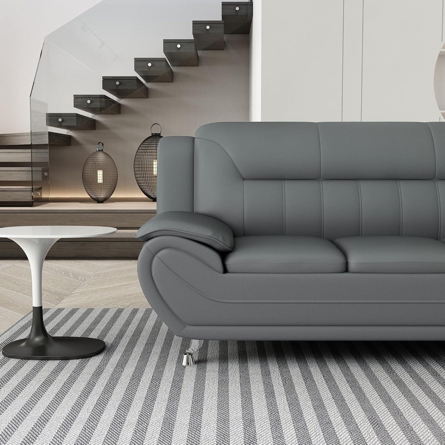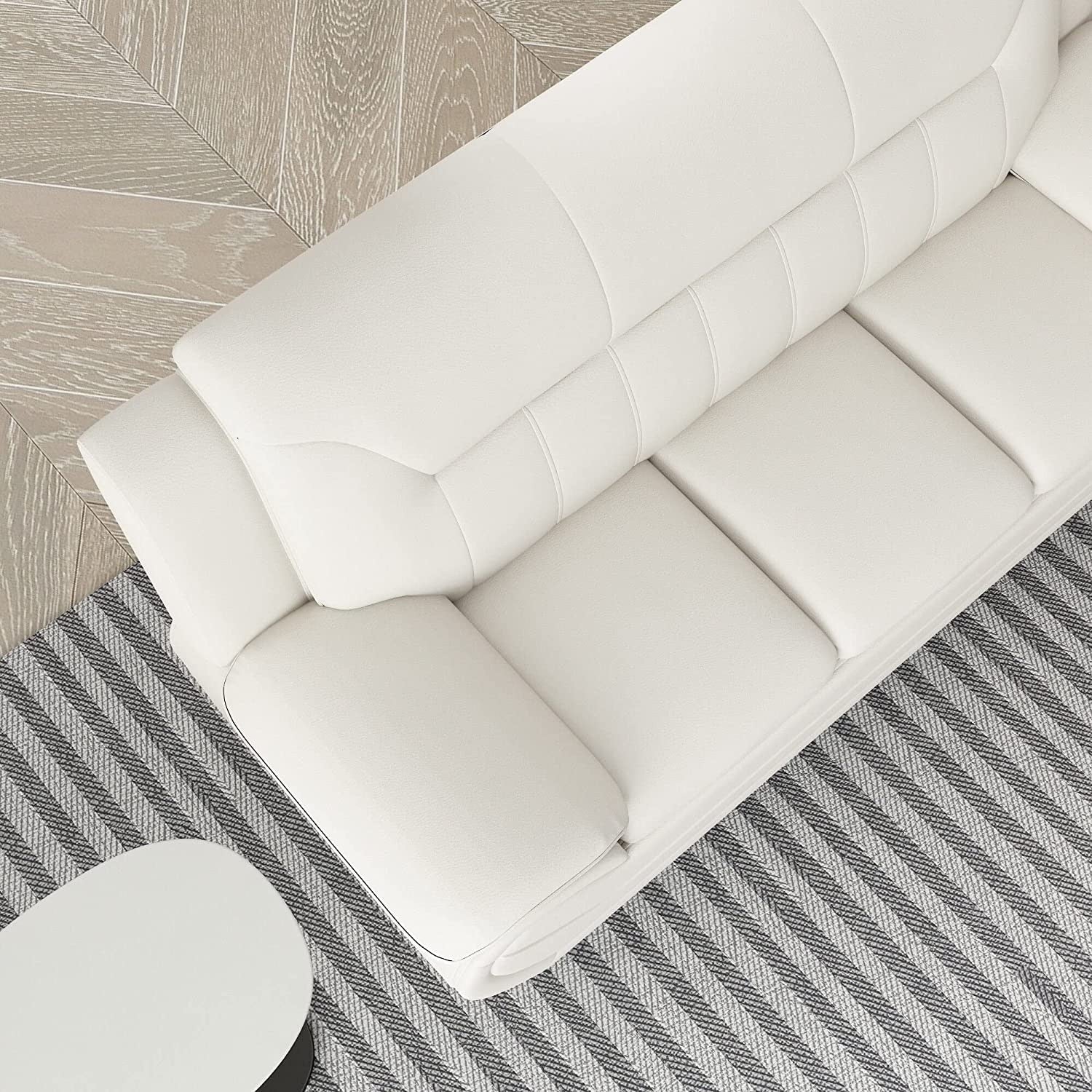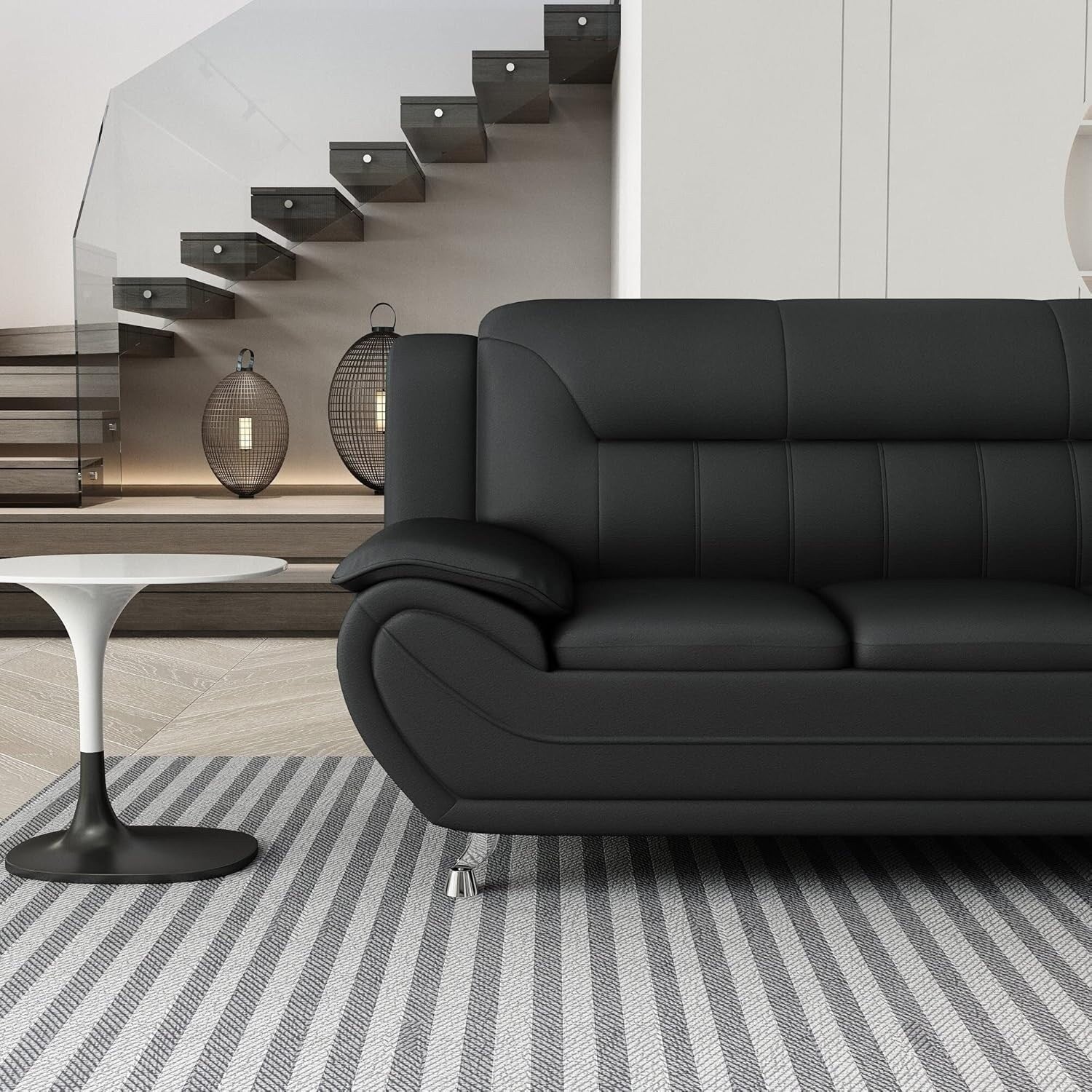 Ce produit allie un style minimaliste moderne à un design impeccable et une fabrication irréprochable. Il apportera à votre intérieur l'élégance et l'impact visuel d'un salon moderne. Conçu pour être confortable, élégant, robuste et conçu pour durer des années, il est recouvert de cuir reconstitué de première qualité pour une surface lisse et facile d'entretien. Ses accoudoirs coussinés offrent un confort accru et ses pieds en acier inoxydable complètent parfaitement son style. Ce canapé sera le choix idéal pour un salon moderne et contemporain.