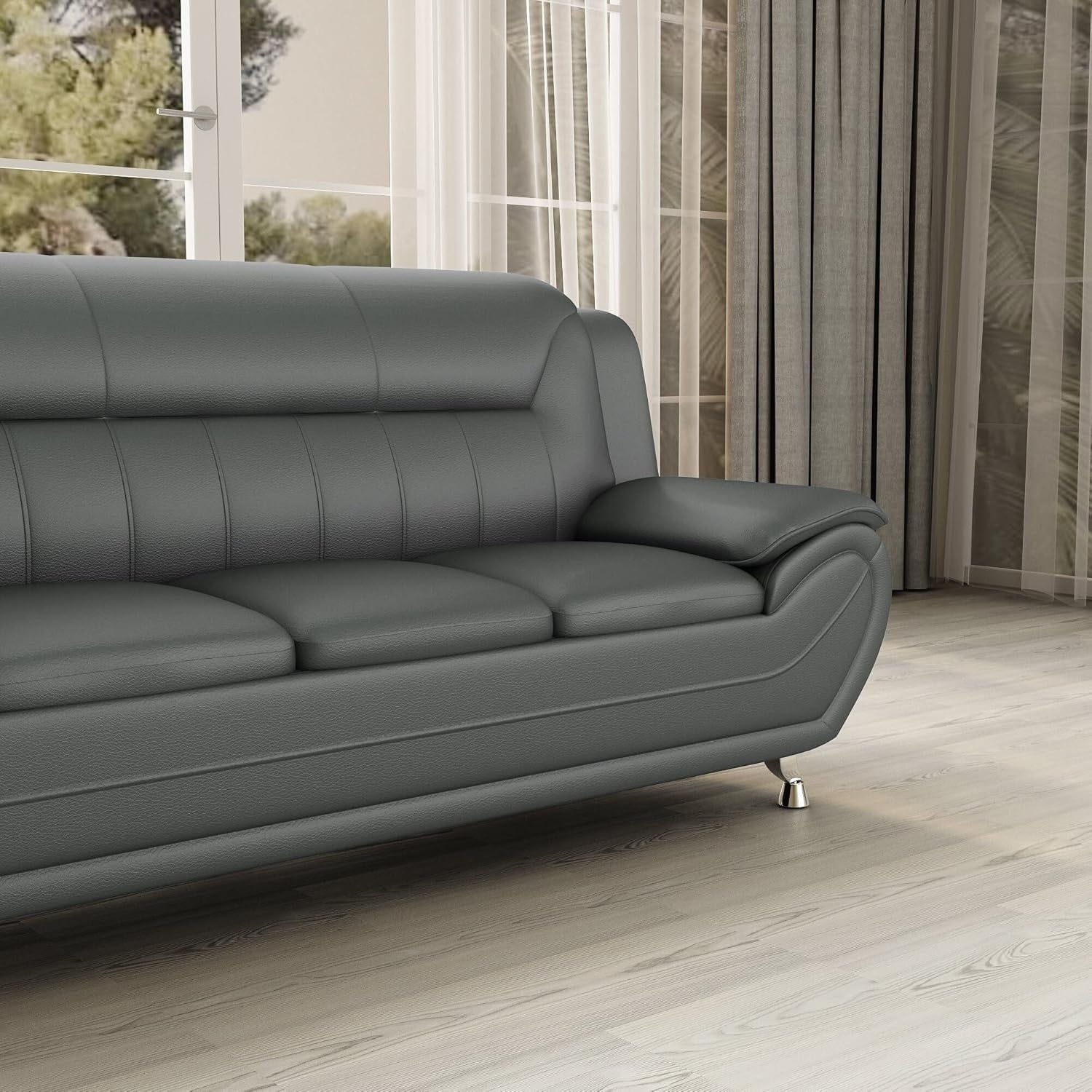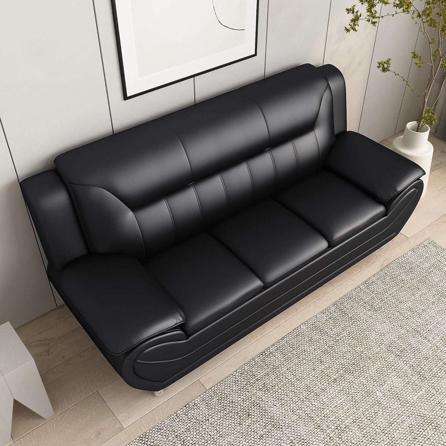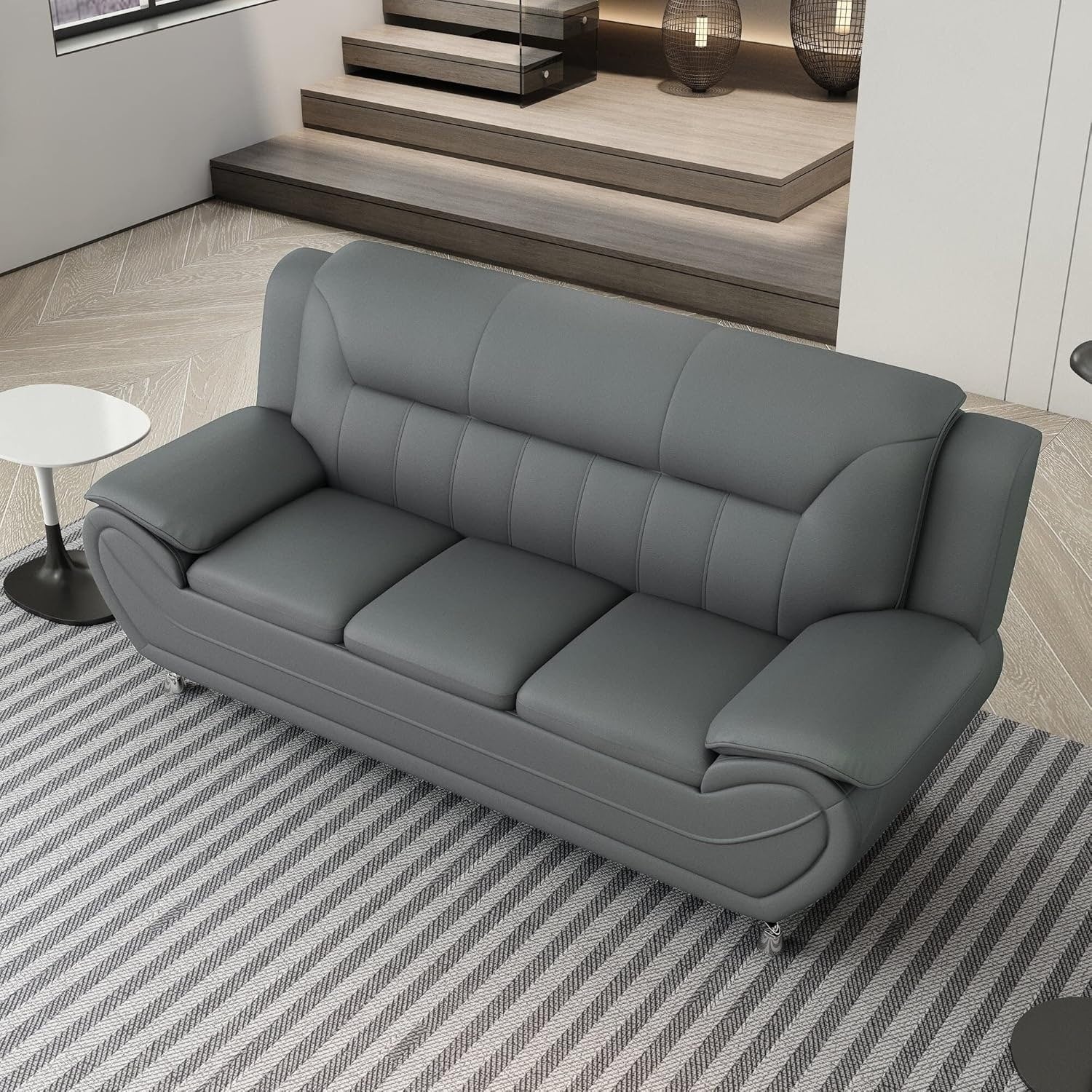 Ce produit allie un style minimaliste moderne à un design impeccable et une fabrication irréprochable. Il apportera à votre intérieur l'élégance et l'impact visuel d'un salon moderne. Conçu pour être confortable, élégant, robuste et conçu pour durer des années, il est recouvert de cuir reconstitué de première qualité pour une surface lisse et facile d'entretien. Ses accoudoirs coussinés offrent un confort accru et ses pieds en acier inoxydable complètent parfaitement son style. Ce canapé sera le choix idéal pour un salon moderne et contemporain.
