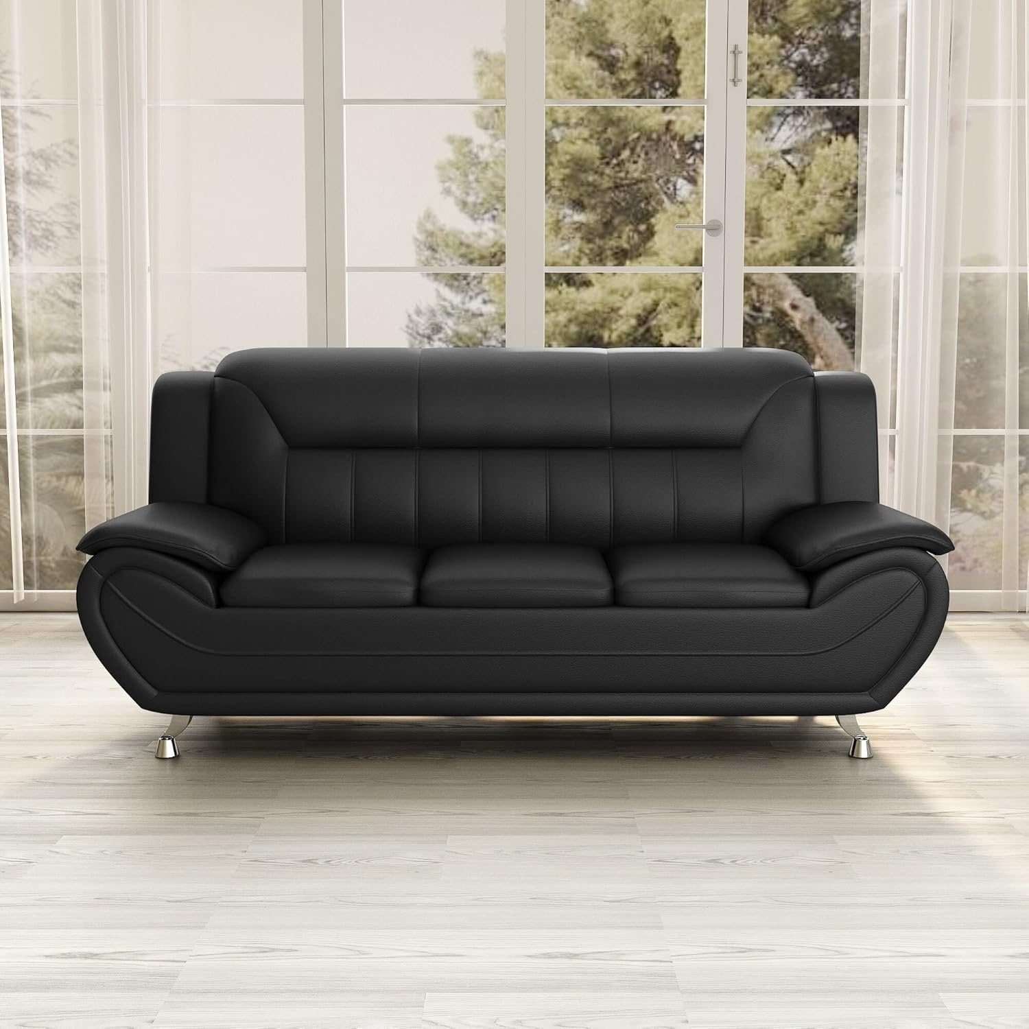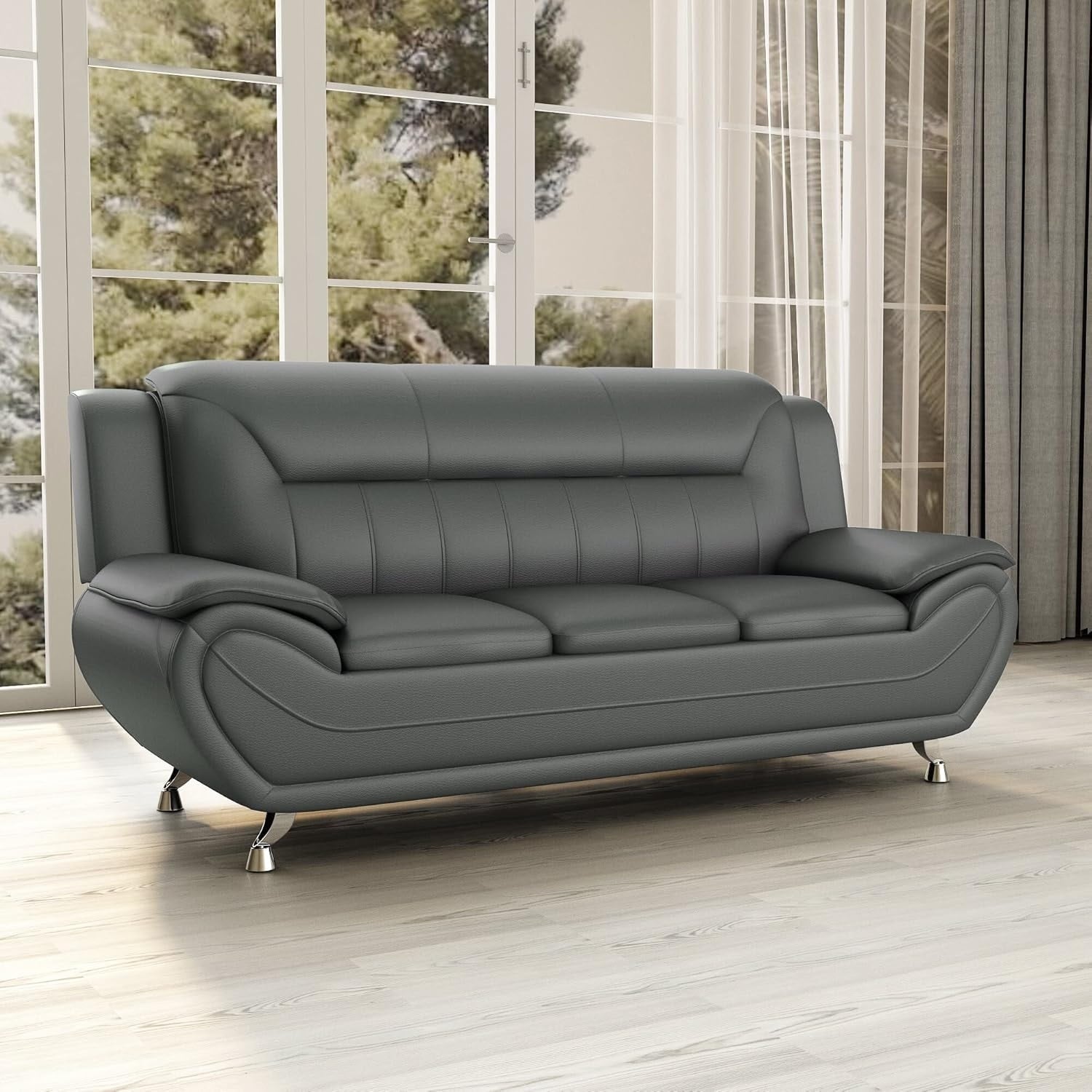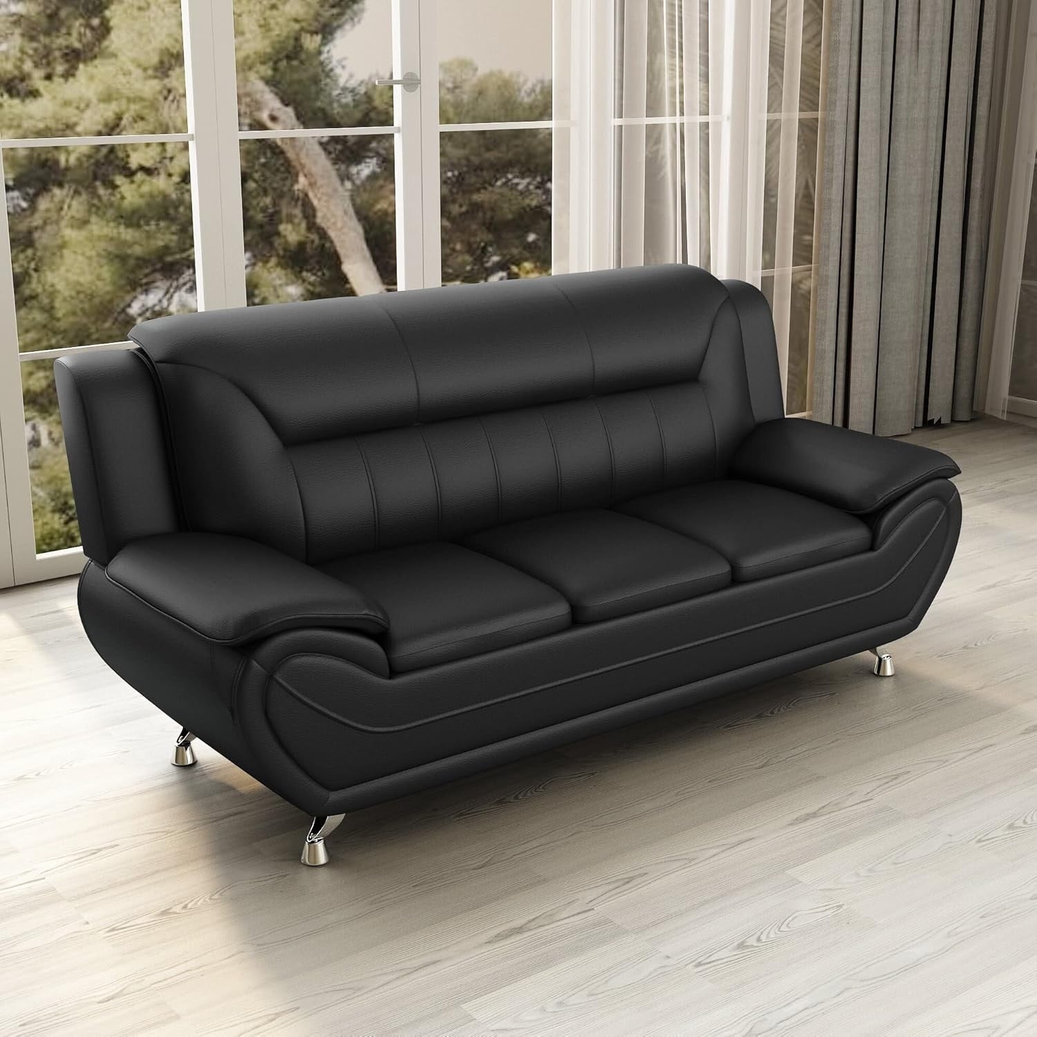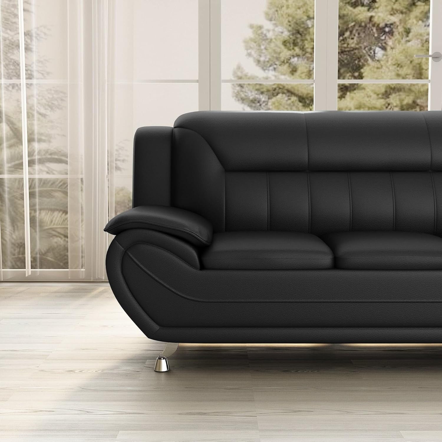 Ce produit allie un style minimaliste moderne à un design impeccable et une fabrication irréprochable. Il apportera à votre intérieur l'élégance et l'impact visuel d'un salon moderne. Conçu pour être confortable, élégant, robuste et conçu pour durer des années, il est recouvert de cuir reconstitué de première qualité pour une surface lisse et facile d'entretien. Ses accoudoirs coussinés offrent un confort accru et ses pieds en acier inoxydable complètent parfaitement son style. Ce canapé sera le choix idéal pour un salon moderne et contemporain.