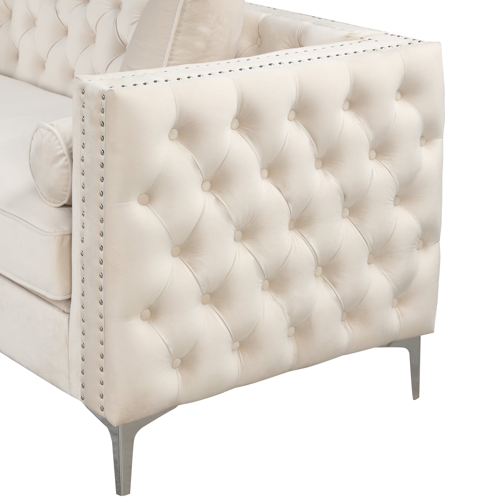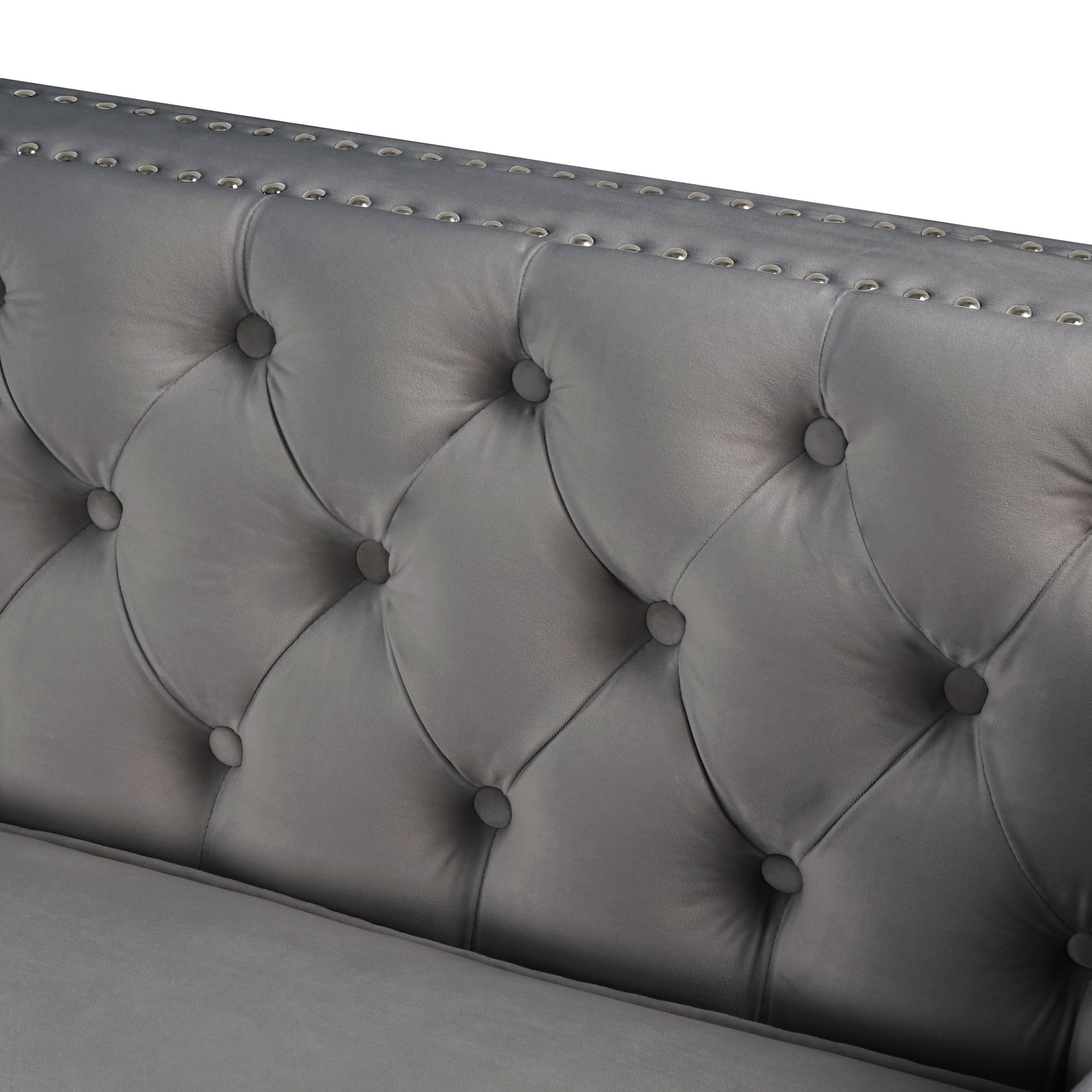 - Design luxueux : inspiré du style Chesterfield, ce canapé en velours pour le salon présente une garniture à tête de clou classique et un capitonnage à boutons sur le dossier et l'accoudoir carré, créant une apparence classique et sophistiquée qui ajoute du glamour à votre maison, salon, appartement et petit espace.