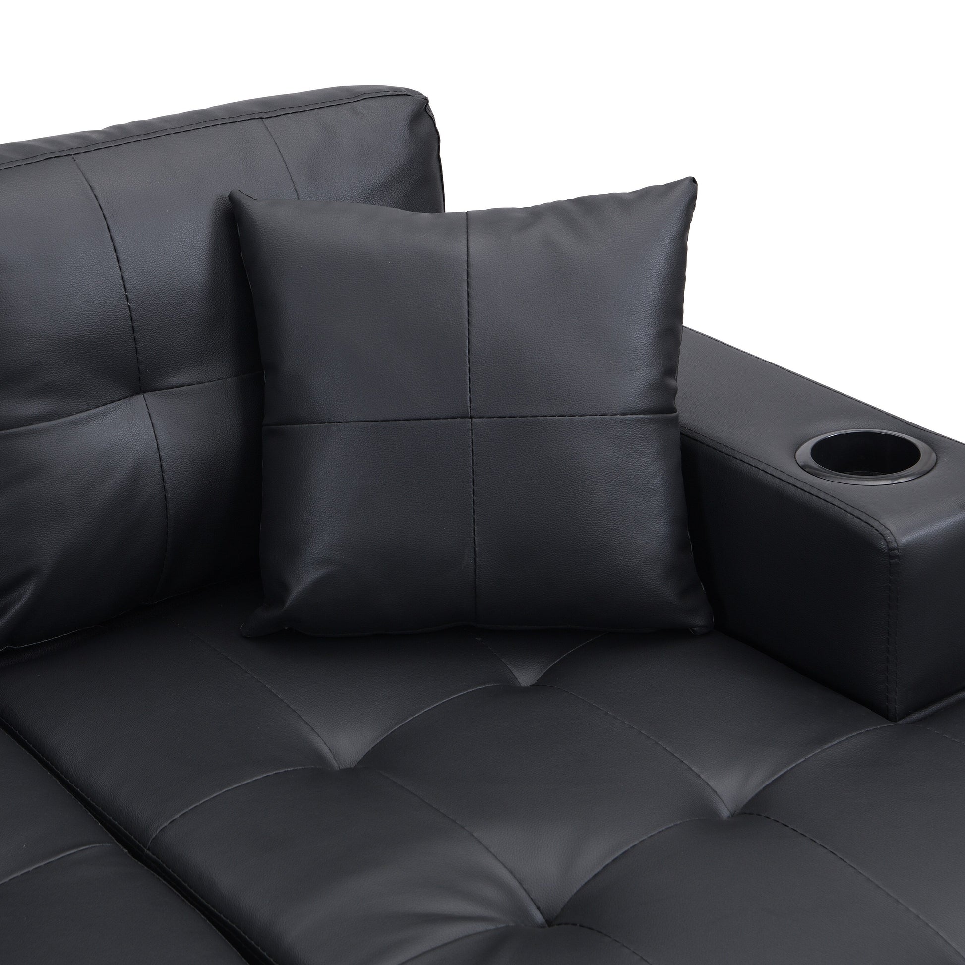 Ensemble de canapés sectionnels pour salon avec méridienne en L, porte-gobelet et méridienne gauche ou droite moderne 4 places (NOIR)