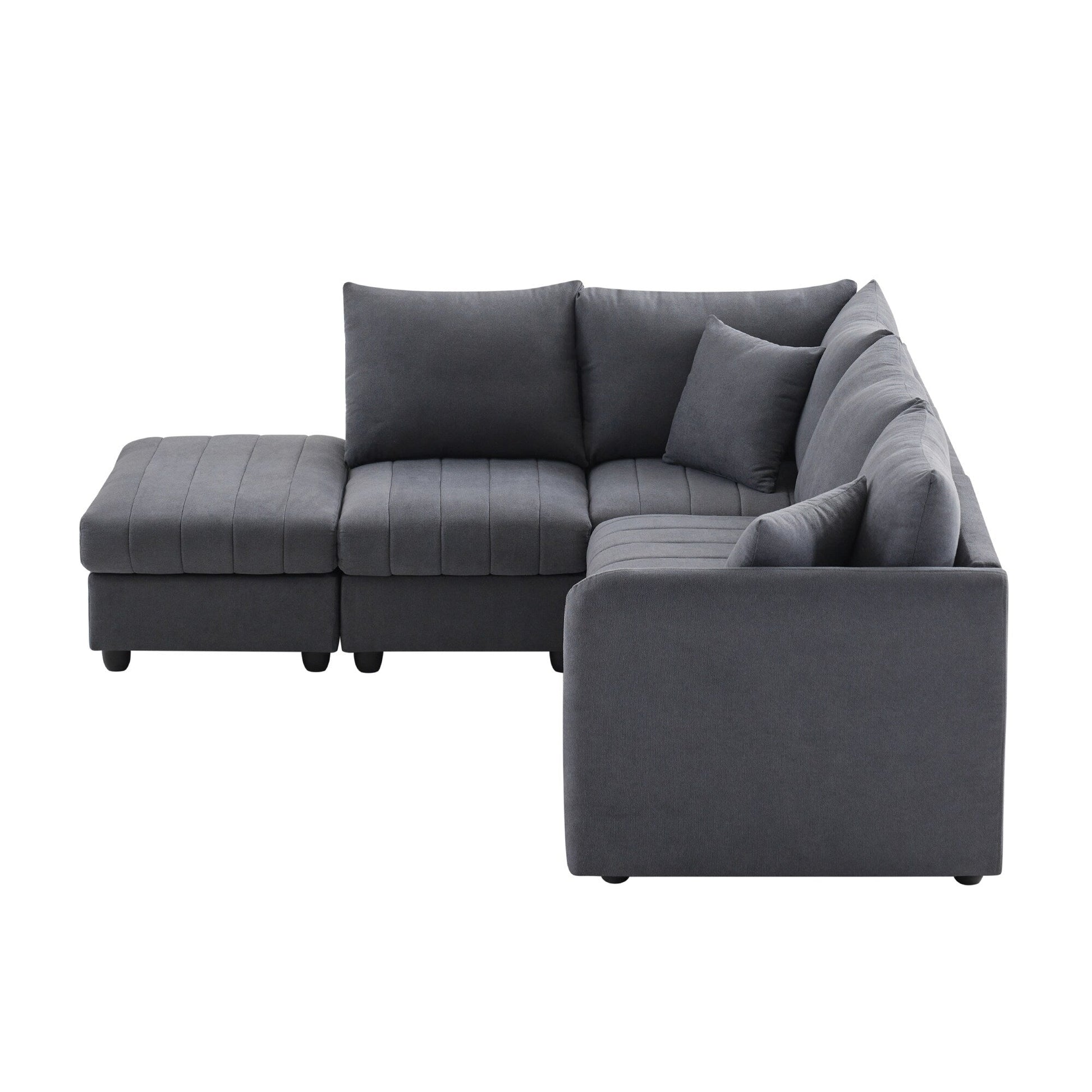 Canapé sectionnel à rayures verticales, 2 coussins, canapé 5 places avec pouf convertible, diverses combinaisons, forme en L
