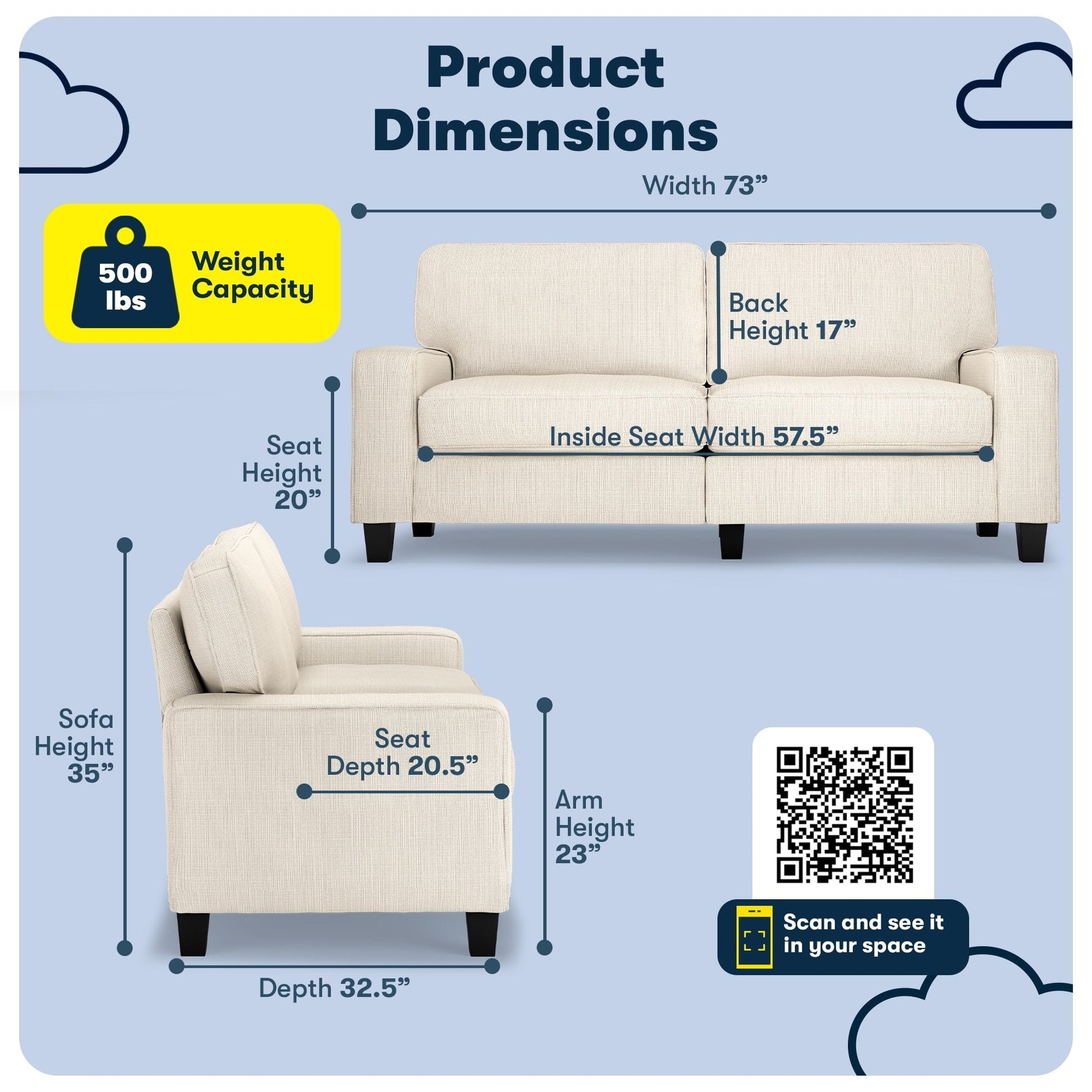 Canapé Serta Palisades 73 avec accoudoirs droits, polyester facile d'entretien, dossier moelleux et coussins d'assise à ressorts ensachés