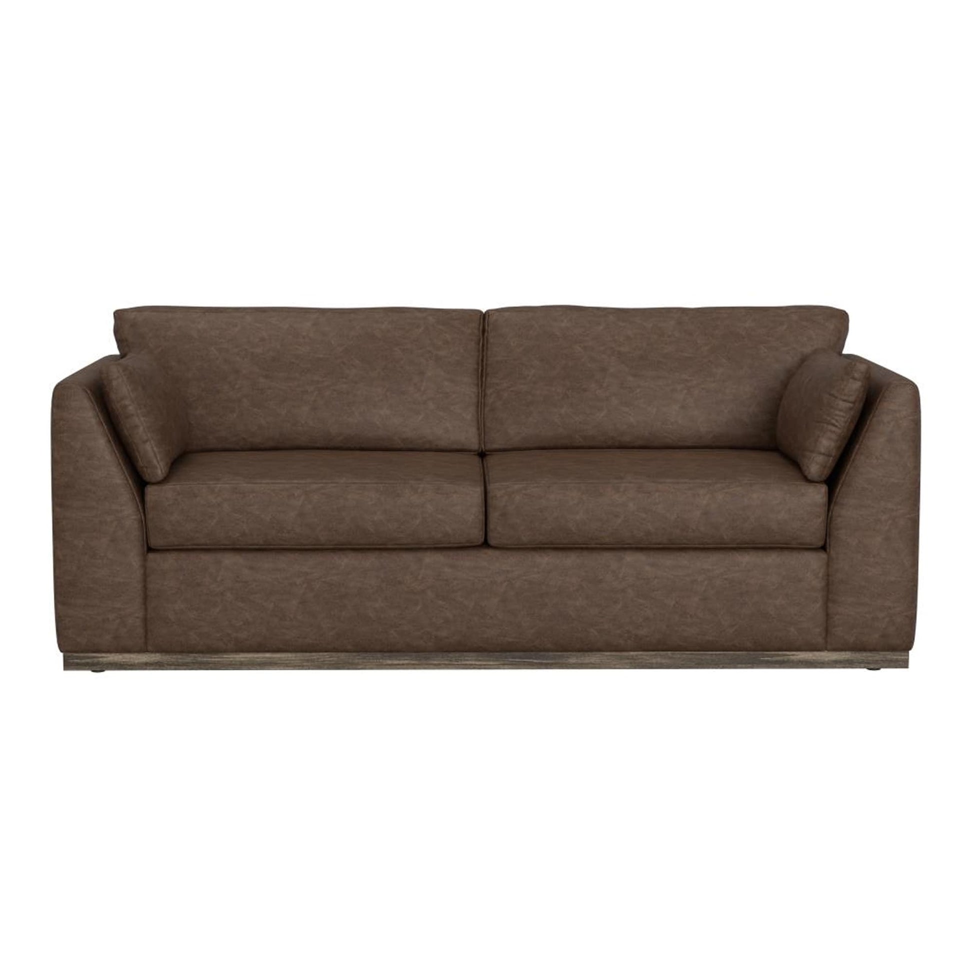 Canapé Sian, 2 plaids décoratifs, dossier avec coussin amovible, similicuir marron foncé