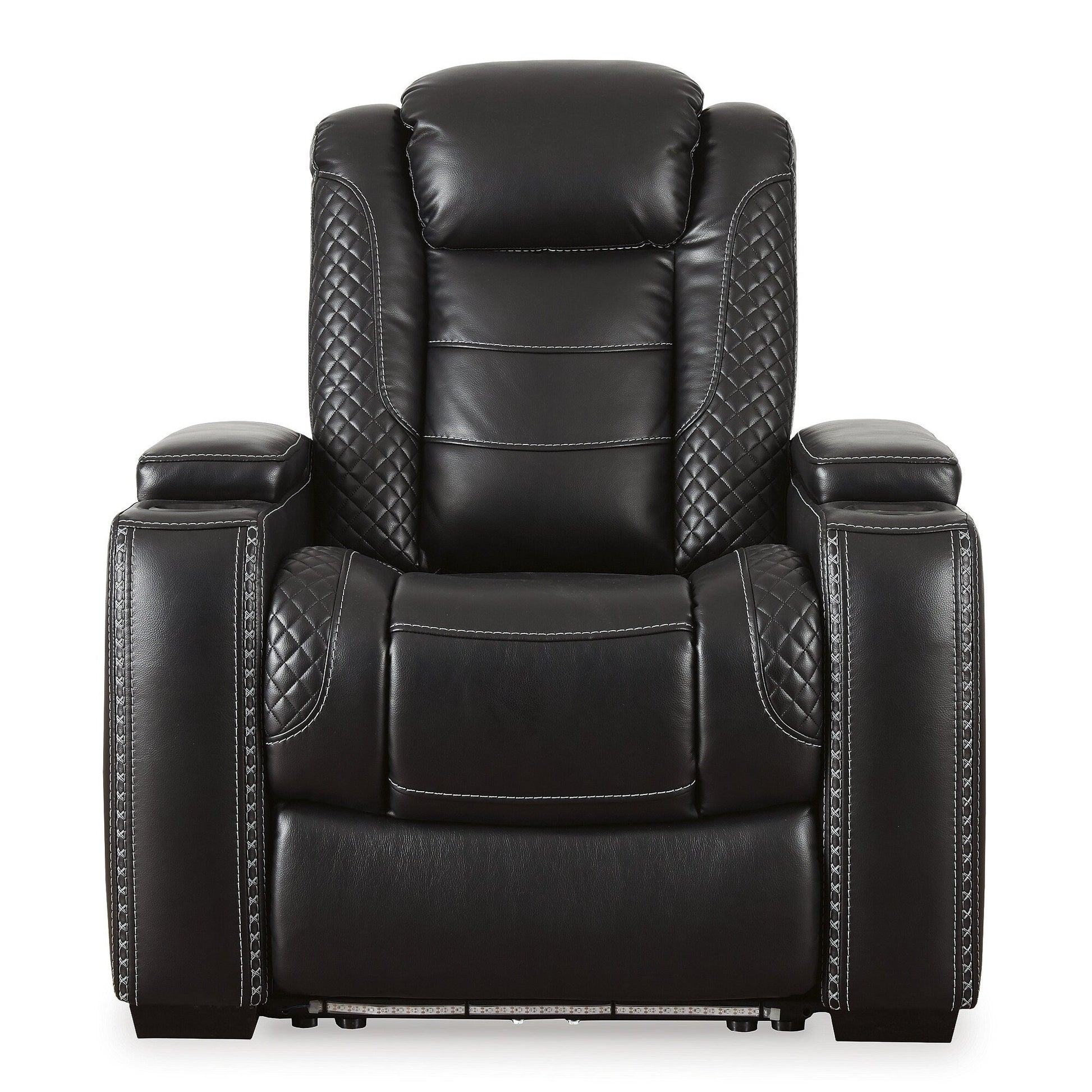 Besoin d'un endroit agréable et relaxant pour vous détendre et regarder la télévision ? Vous trouverez cet espace avec le fauteuil inclinable électrique Party Time avec appui-tête réglable. Avec son revêtement en polyester couleur nuit, ses coutures croisées, ses détails en treillis et son éclairage LED, il affiche un style résolument moderne. Côté confort, vous apprécierez son siège baquet inclinable et son appui-tête électrique réglable qui offre un angle de confort personnalisé pour regarder la télévision. Pratique également : il est équipé de porte-gobelets éclairés, d'un bouton d'alimentation intégré avec port USB, d'un accoudoir rembourré relevable avec rangement dissimulé et d'un éclairage LED inférieur. Il deviendra assurément un succès dans tous les intérieurs. Comment ne pas en avoir qu'un ?