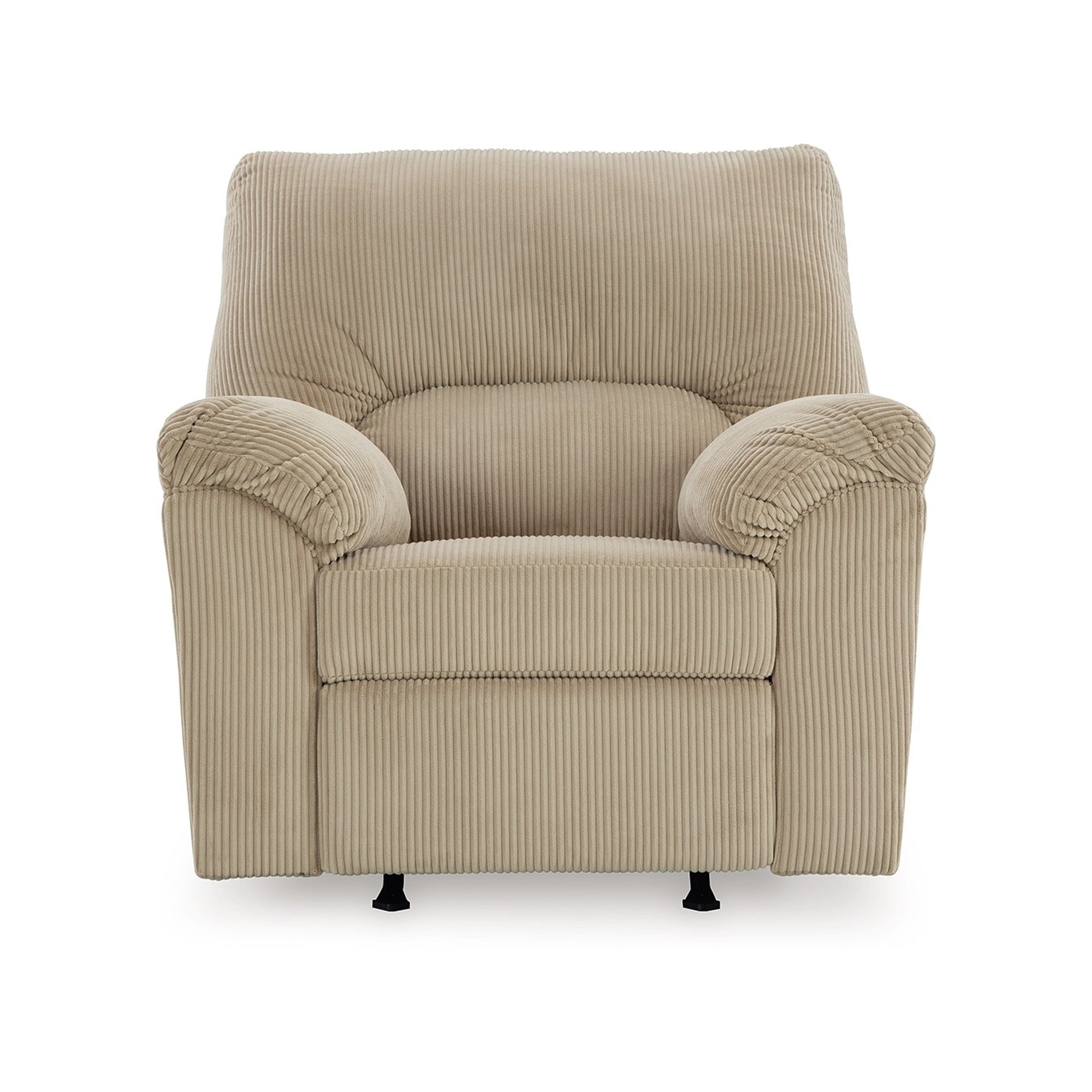 Ce fauteuil à bascule inclinable apporte une touche de détente et de confort à votre intérieur grâce à son design contemporain et décontracté. Revêtu d'un velours côtelé crème ultra-doux, son inclinaison d'une simple pression assure un confort optimal, tandis que le doux balancement favorise la détente. Doté de coussins en mousse haute résilience enveloppés de fibres de polyester épaisses, il est confortable et durable. Découvrez notre collection Simy pour en savoir plus.