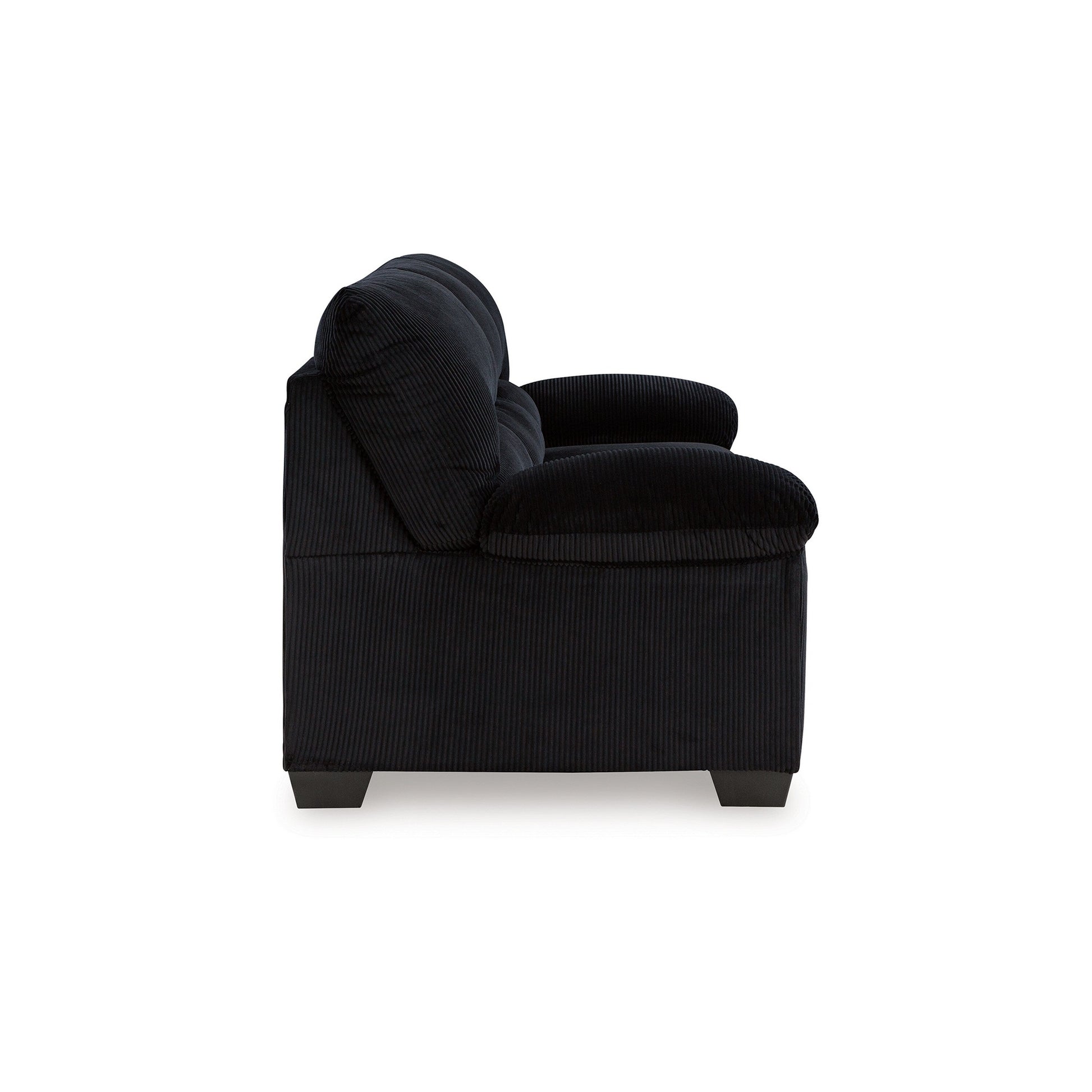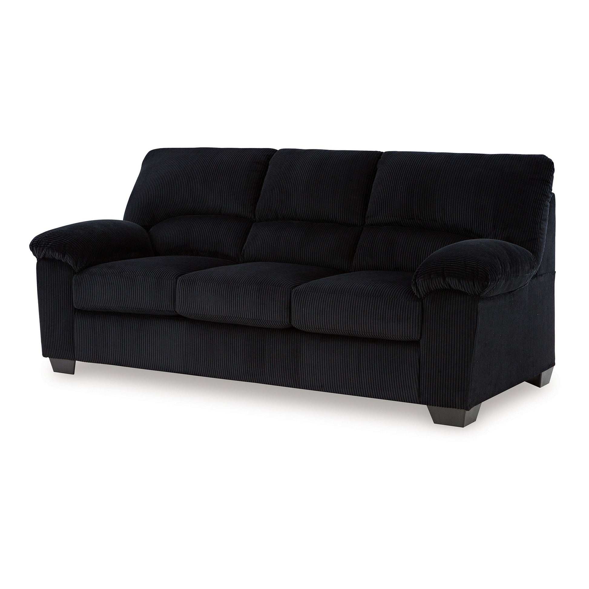 Offrez un confort absolu à votre salon avec ce canapé sophistiqué. Doté d'une structure renforcée aux coins pour une durabilité accrue, ce canapé est recouvert d'un doux velours côtelé polyester noir. Les coussins d'assise amovibles et les coussins de dossier fixes sont garnis de mousse haute résilience enveloppée de fibres de polyester épaisses, pour une assise moelleuse. Découvrez notre collection Simy pour plus d'options.