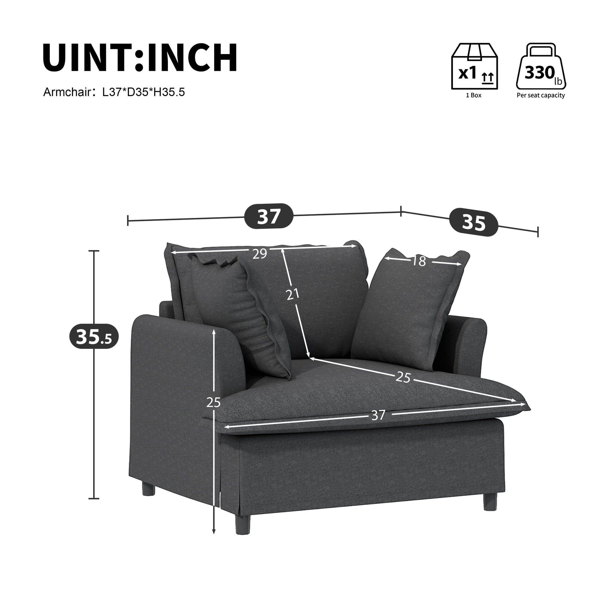 Module de canapé 1 place pour canapé sectionnel modulaire, fauteuil à assise large en chenille avec coussins, canapé 1 place rembourré