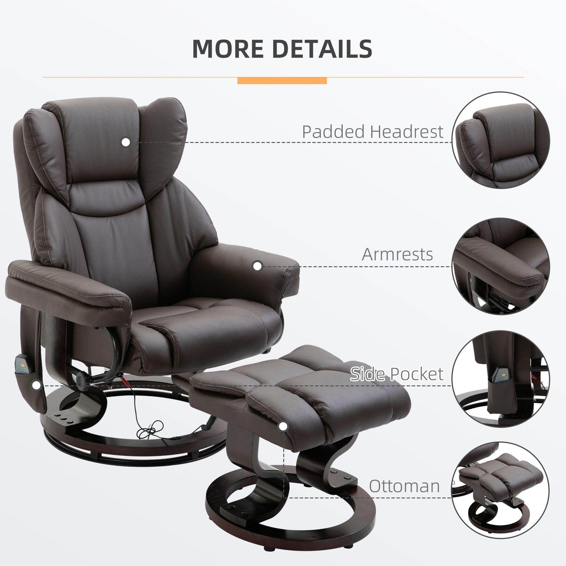 Petit fauteuil inclinable en similicuir avec ottoman, massage 10 zones, rotation à 360° et télécommande