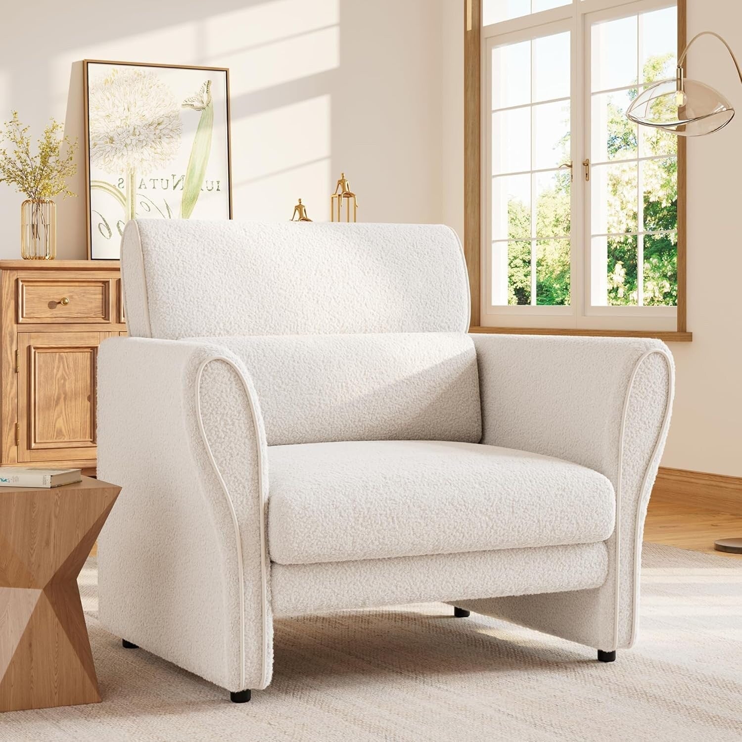 Canapé, fauteuil d'appoint moderne en boucle, fauteuil rembourré en peluche, fauteuil de salon confortable