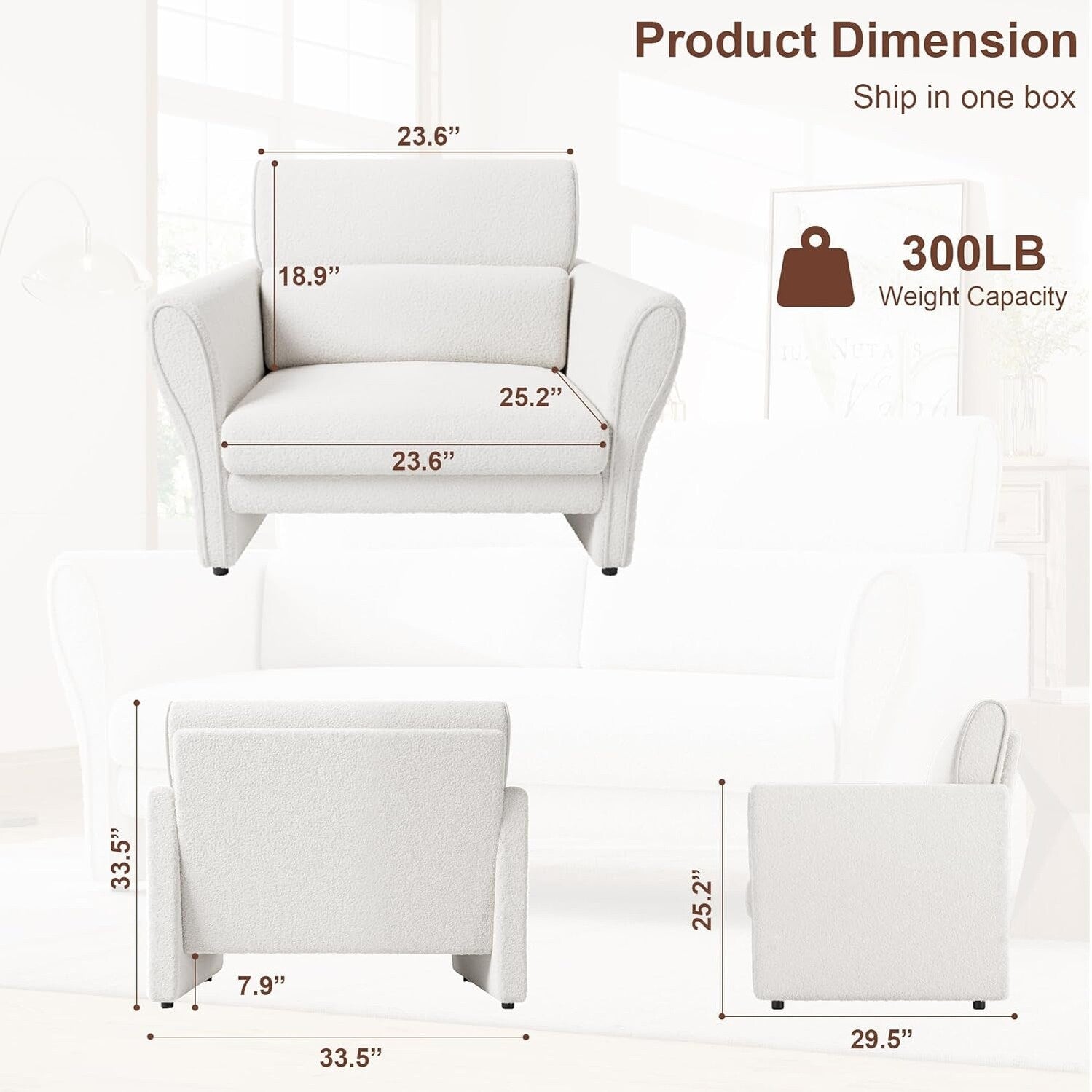 Durabilité de qualité professionnelle - Conçu pour durer avec un cadre hybride renforcé en fer et bois (capacité de 136 kg) et un noyau en mousse haute densité. La base ultra-stable et le tissu sherpa résistant à l'usure résistent à un usage quotidien tout en offrant un confort moelleux au niveau des coussins d'assise, des accoudoirs et du dossier.
