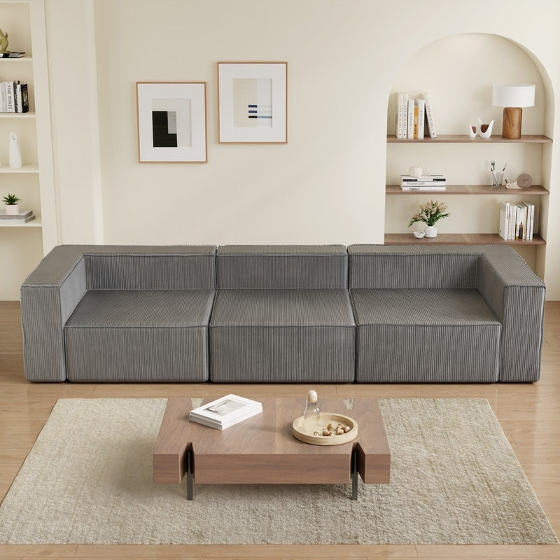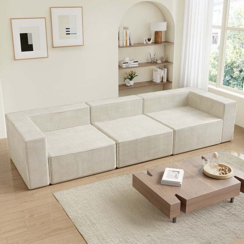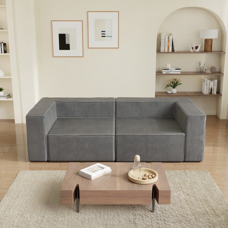 Canapé à compression en velours côtelé sans accoudoirs avec dossier solide