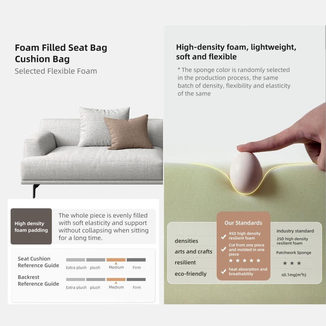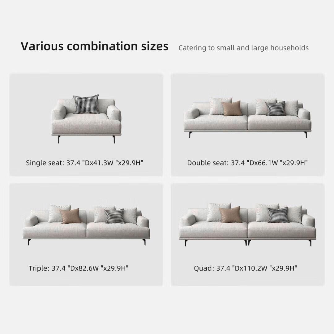 Canapé droit en tissu beige avec accoudoirs carrés