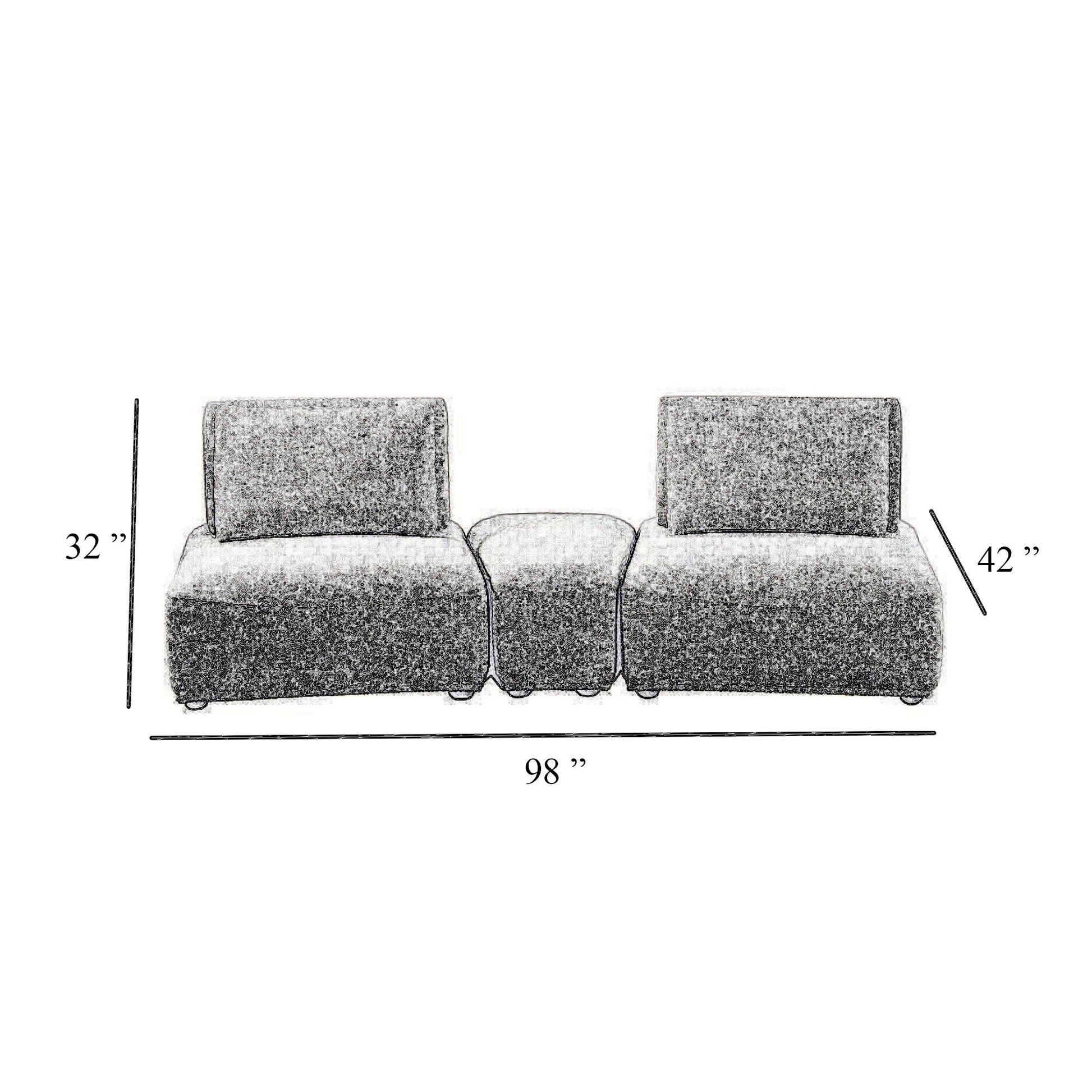Ce canapé deux places avec ottoman allie à la perfection style, confort et fonctionnalité. Son revêtement en chenille bleue offre un toucher doux et texturé qui optimise le confort tout en conservant une allure raffinée. De plus, sa conception modulaire permet des aménagements flexibles pour s'adapter à différents espaces et configurations. Découvrez notre collection Stavan pour plus d'options.
