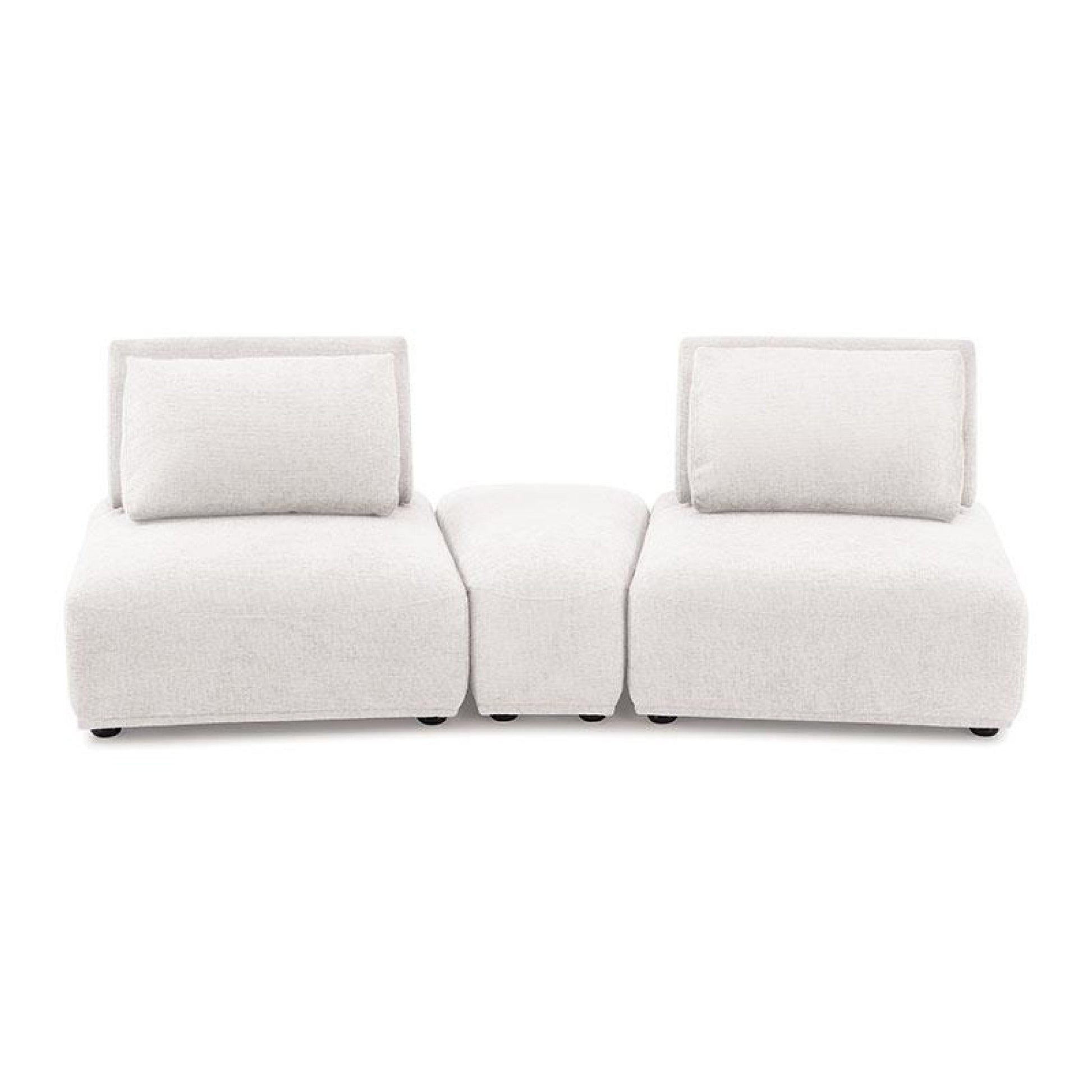 Ce canapé deux places avec ottoman allie à la perfection style, confort et fonctionnalité. Son revêtement en tissu bouclé blanc offre un toucher doux et texturé qui optimise le confort tout en conservant une allure raffinée. De plus, sa conception modulaire permet des aménagements flexibles pour s'adapter à différents espaces et configurations. Découvrez notre collection Stavan pour plus d'options.